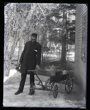Ed Frear with his pickle cart, (from Wenham Depot)