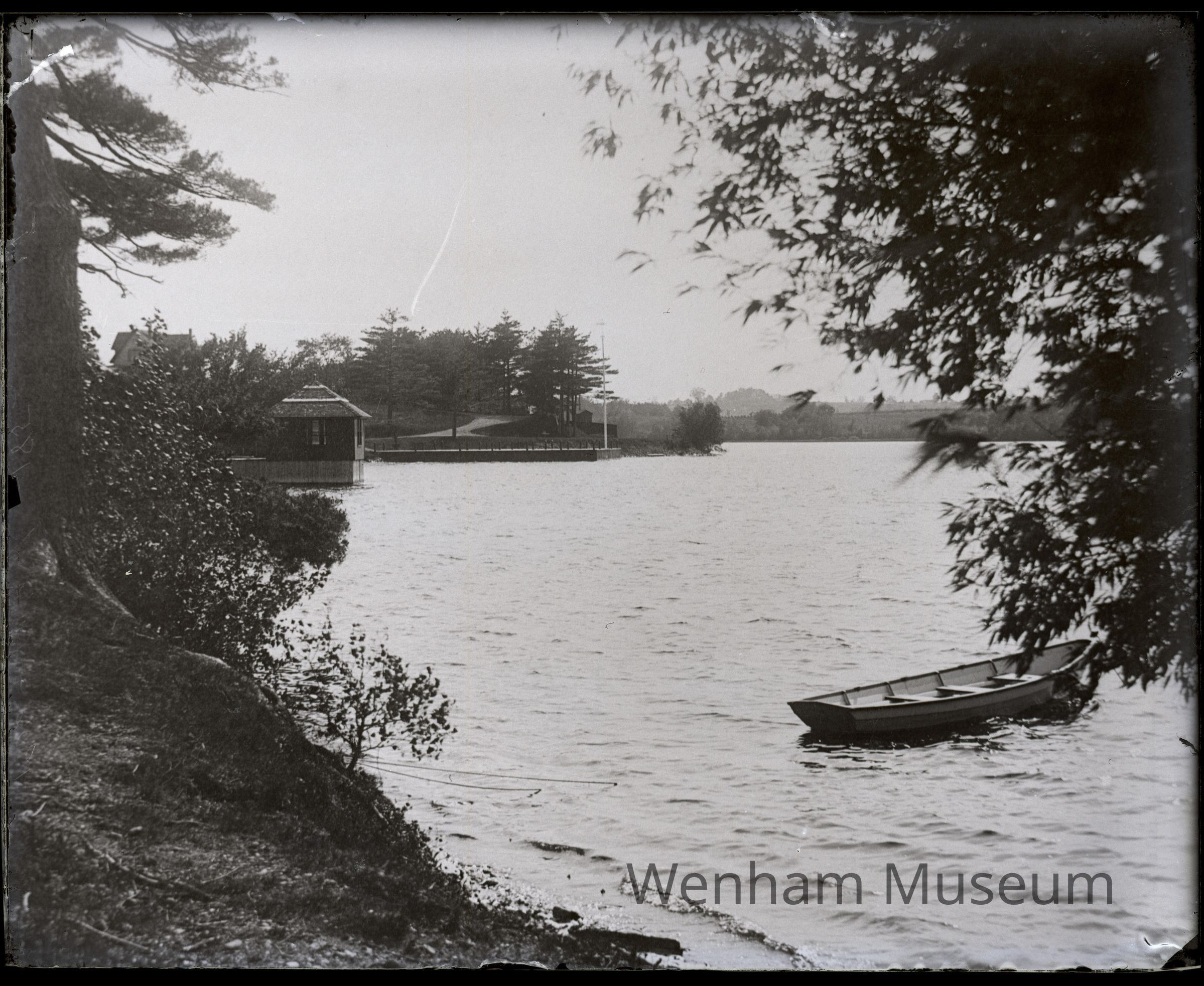 Wenham Lake, at North Beverly Water Works, with row boat, June 6, 1891; copy of plate X2017.185