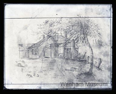 Drawing (copy) of Old Lummus Blacksmith Shop, Main St., Wenham (located on L.H. side of entrance to Sam Hill's yard)Collection