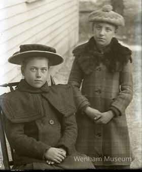 Marion Stanley and Marion Gray photographed outside. One is seated and both wear hats. Marion Gray wears a coat with a fur collar.Collection