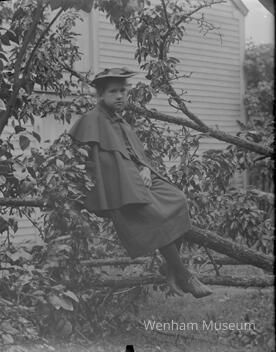 Flossie Vroom in old pear tree.