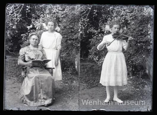 1) Amy Cossaboom & Mother 2) Amy Cossaboom Playing Violin, duplex