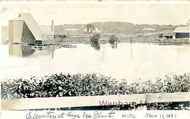 Landscape with elevator at Gage Ice Plant, Wenham Lake (detail of glass negative 192)