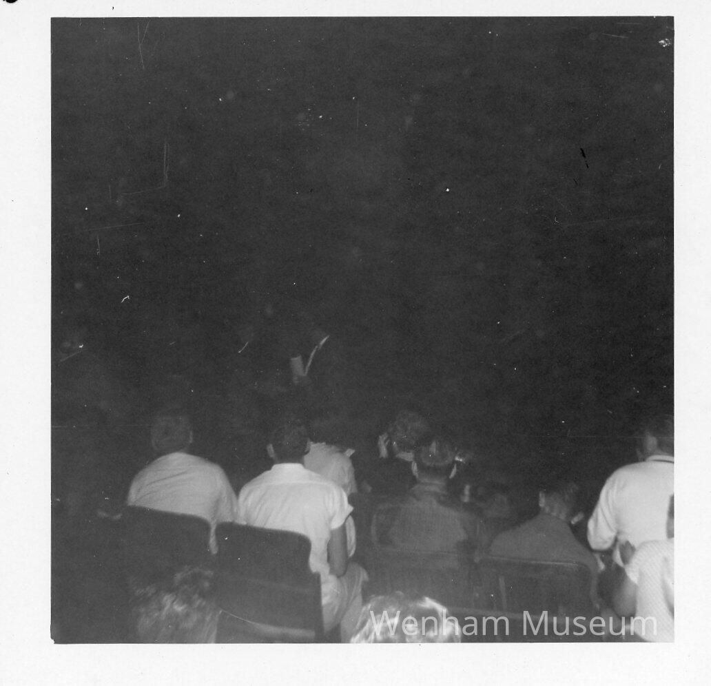 Members of Wenham's Boy Scout Troop 28 and others from the North Shore preparing to go Colorado Springs, CO for the Boy Scout Jamboree, celebrating the 50th anniversary of boy scouting in America. Glenn Gray's caption reads: "Presentation of State Flay to Chris Yeo to take to Jamboree."