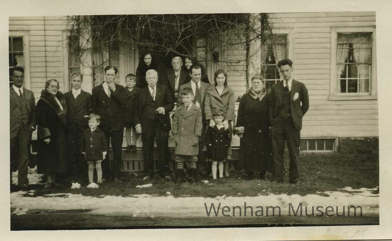 Black and white photograph of a family gathering at 13 Larch Row, Wenham, circa 1931