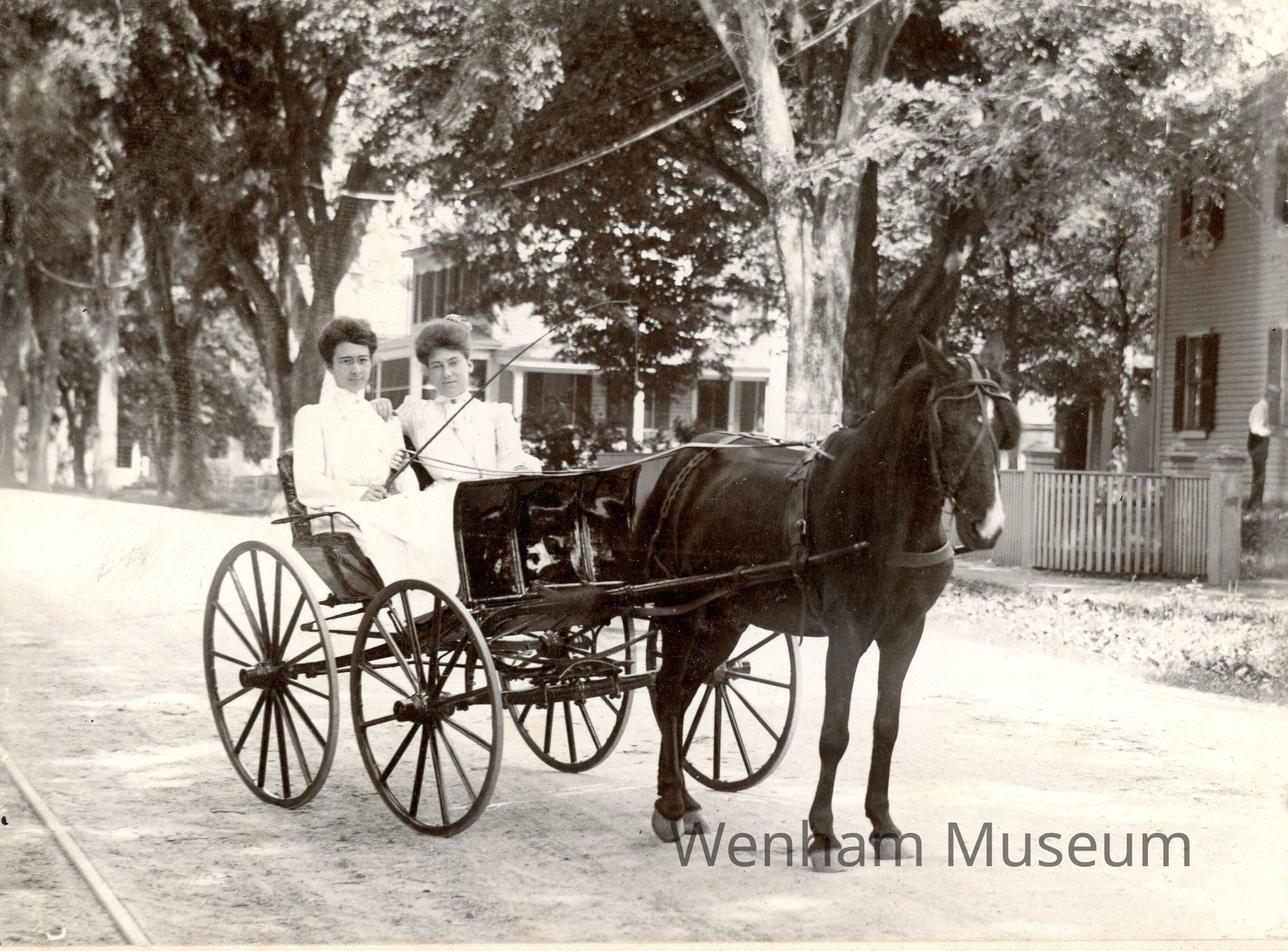 Pony Cart with the Checketts, mounted print, glass plate negative missing Handwritten on back of board: "B.H. Conant/Wenham, Mass./No.-1299C/July 4, 1904/Pony Cart with the Checketts