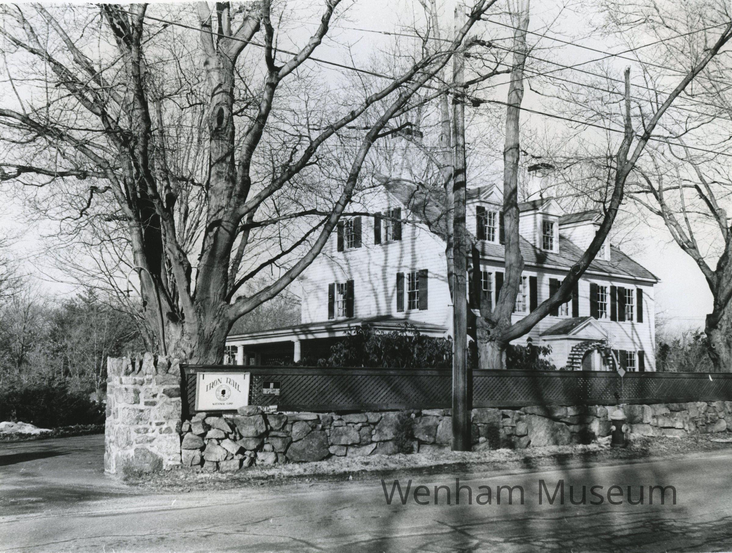 Black and white photograph of the Iron Rail House at Thompson's Corner, Wenham. December 1971.