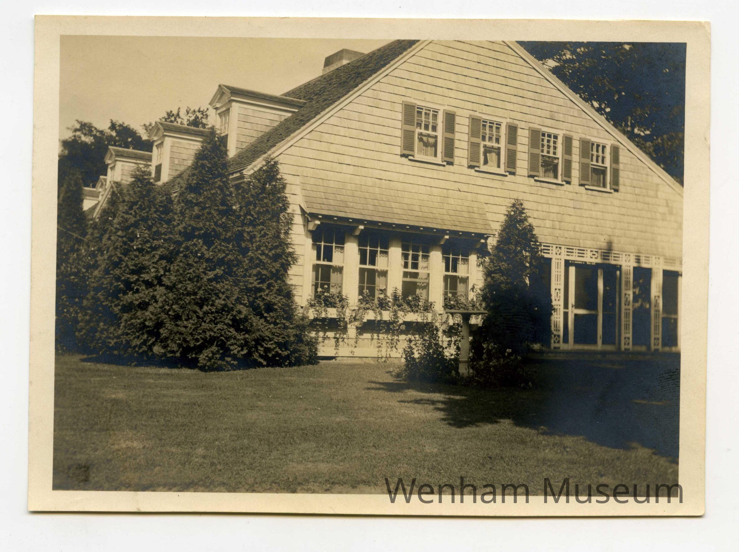 This is a photograpg of the Wenham Tea House in the summer of 1929. The Tea House was also the meeting place for the reform group, Village Improvement Society. Has written on the back "Tea House Summer 1929"