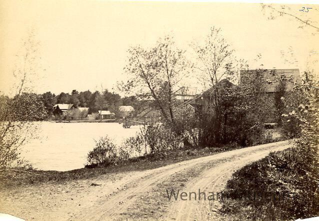 Landscape with Wenham Lake and Enon Bluff, from near Kavanagh Ice Houses, showing Smith-Julian Ice Houses, Charles Stanton House and Abbie Pingree House in background,