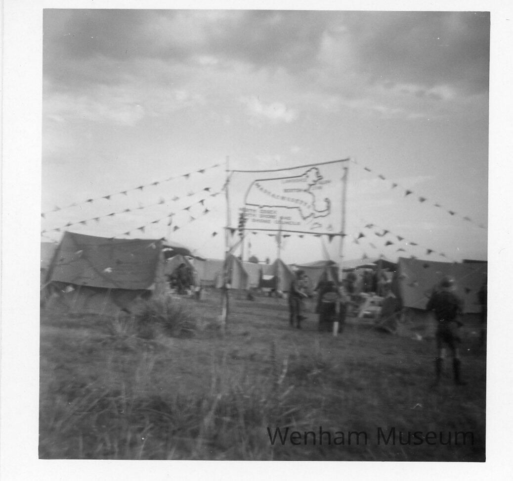 1960 Boy Scout Jamboree in Colorado Springs, CO, showing the "Gateway to our campsite. Glenn Gray and his scoutmates attended. Glenn was a member of Wenham Troop 28.