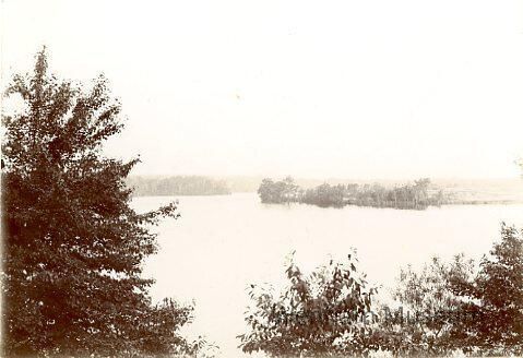 Landscape, Wenham Lake from top of Pond Hill, sepia toned print of Conant glass negative 001316