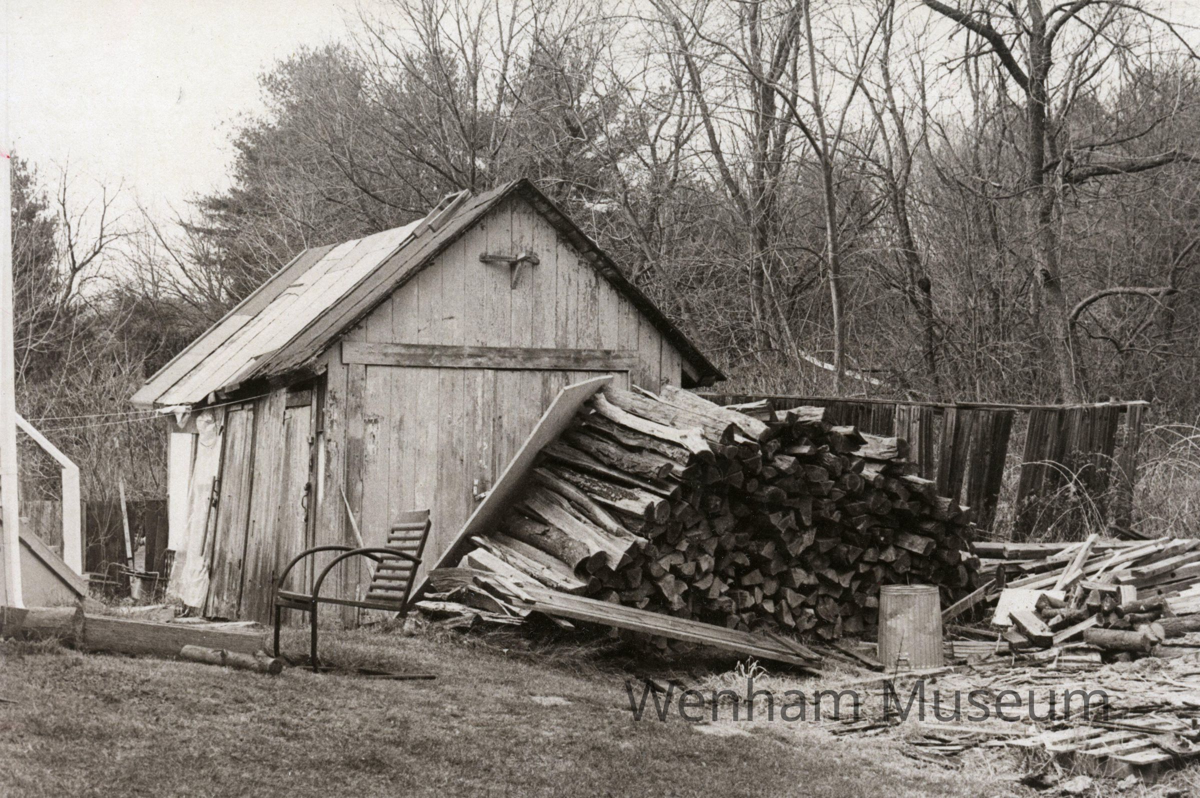 Photograph, 7.25 x 5," of the shed in the backyard of Lawrence Homan's House on Porter St., Wenham, December 12, 1979. Photograph by Hamilton & Wenham Chronicle.