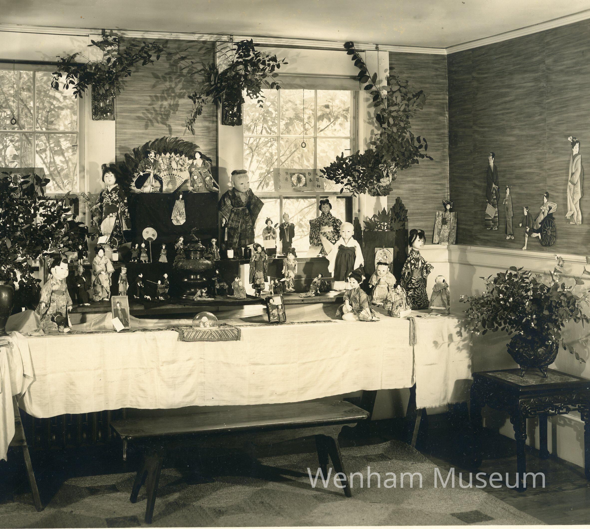 Second International Doll Collection exhibit at the R. Dodge house in Wenham. This photograph shows the Chinese and Japanese dolls.