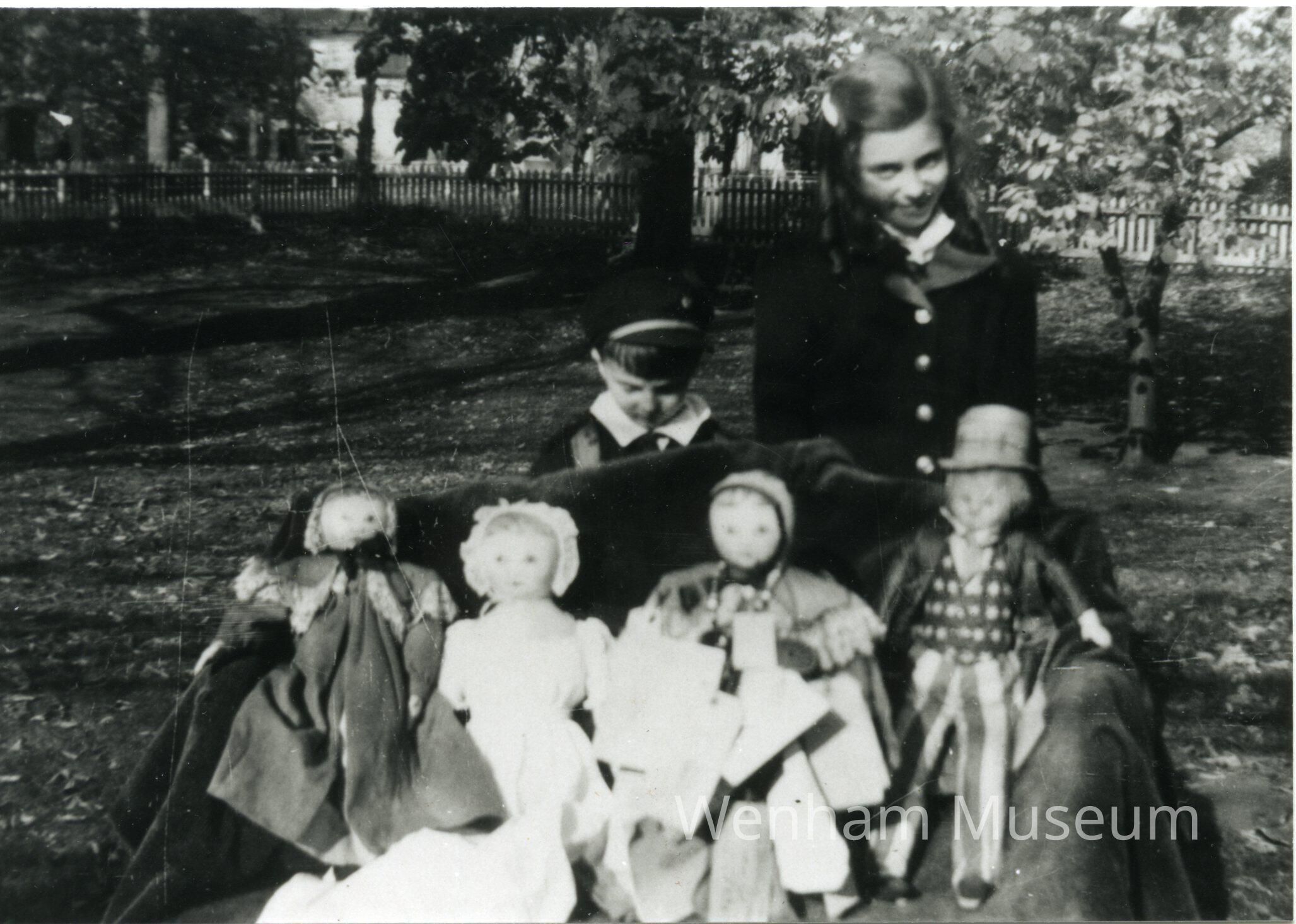 Photograph copy of Diane and Walter Doyle with dolls, Wenham, 1941.