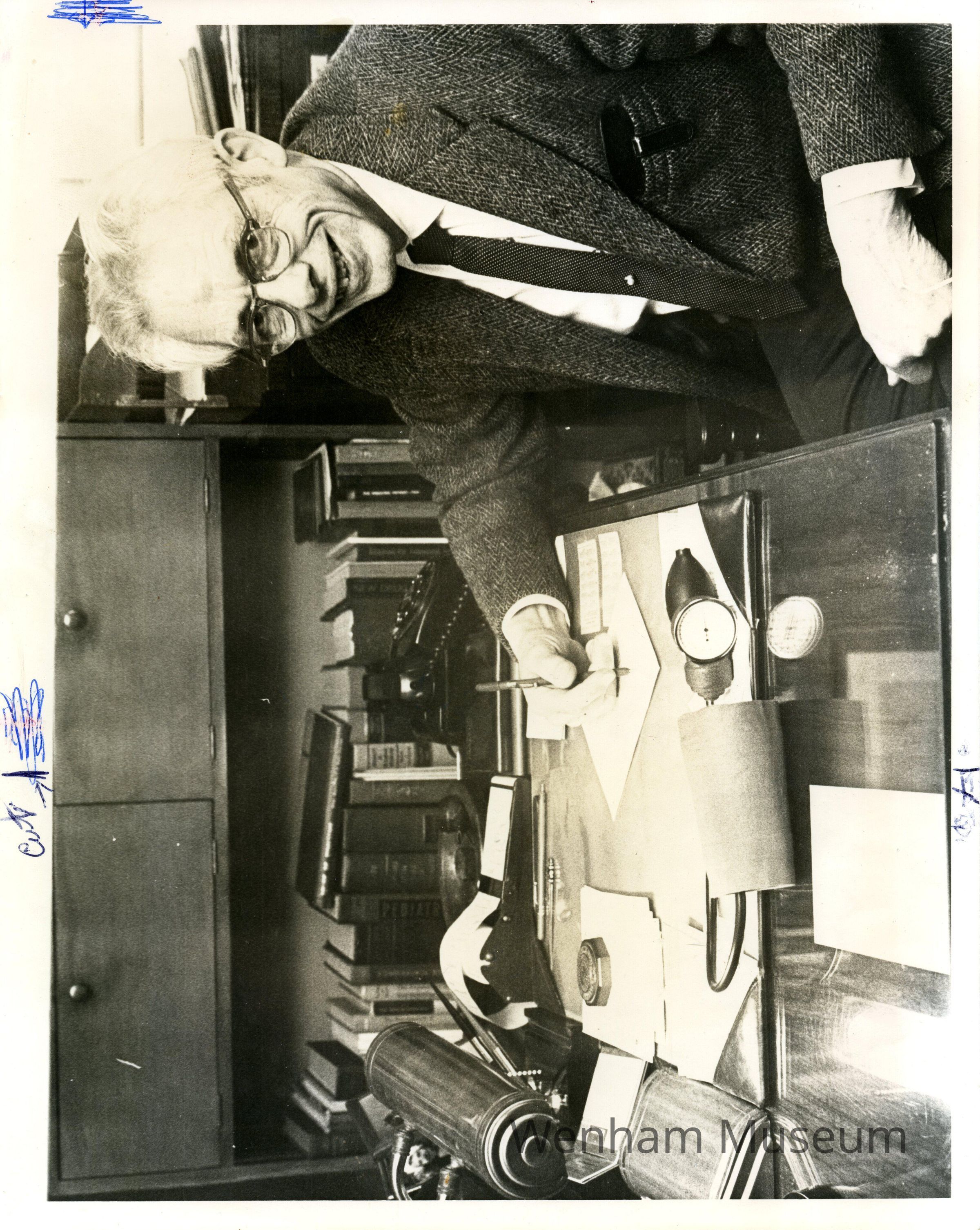 Verso: "Died Dec. 28, 1975 Dr. Rogers Wenham Photo by Ed Volkin"