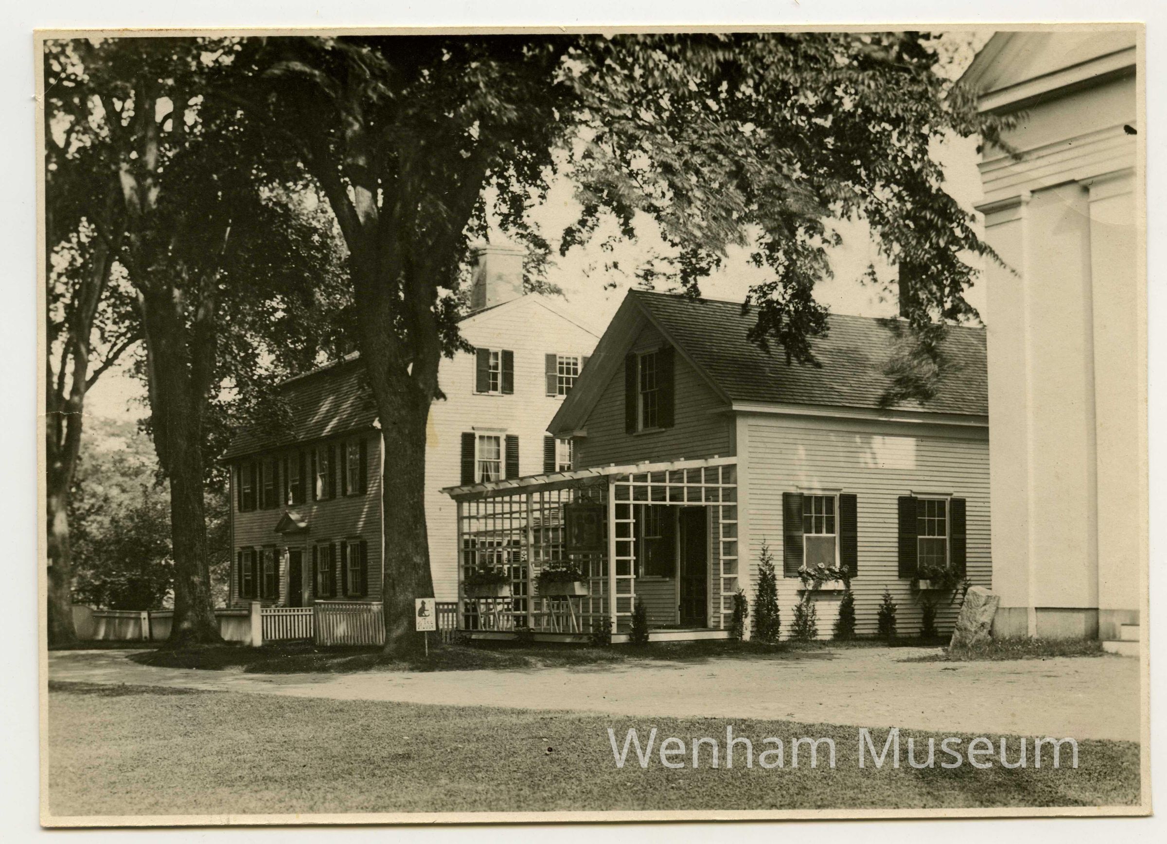 A photograph of the Wenham Tea House. This was the meeting place for the women's reform group, Village Improvement Society. This reform group was in charge of the beautification of Wenham town. It then grew to also be in charge of improving the town's education and entertainment.