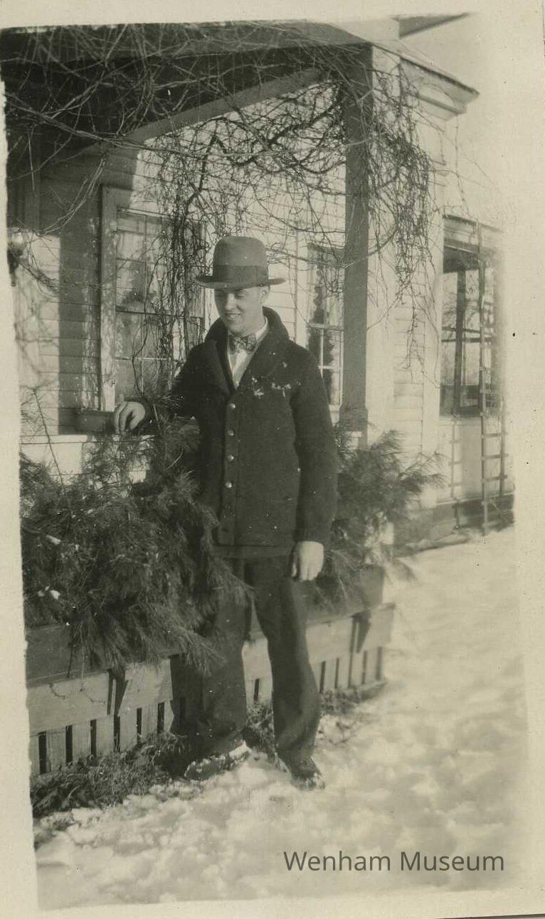 Black and white photograph of Owen I. Haszard circa 1930 at 13 Larch Row, Wenham