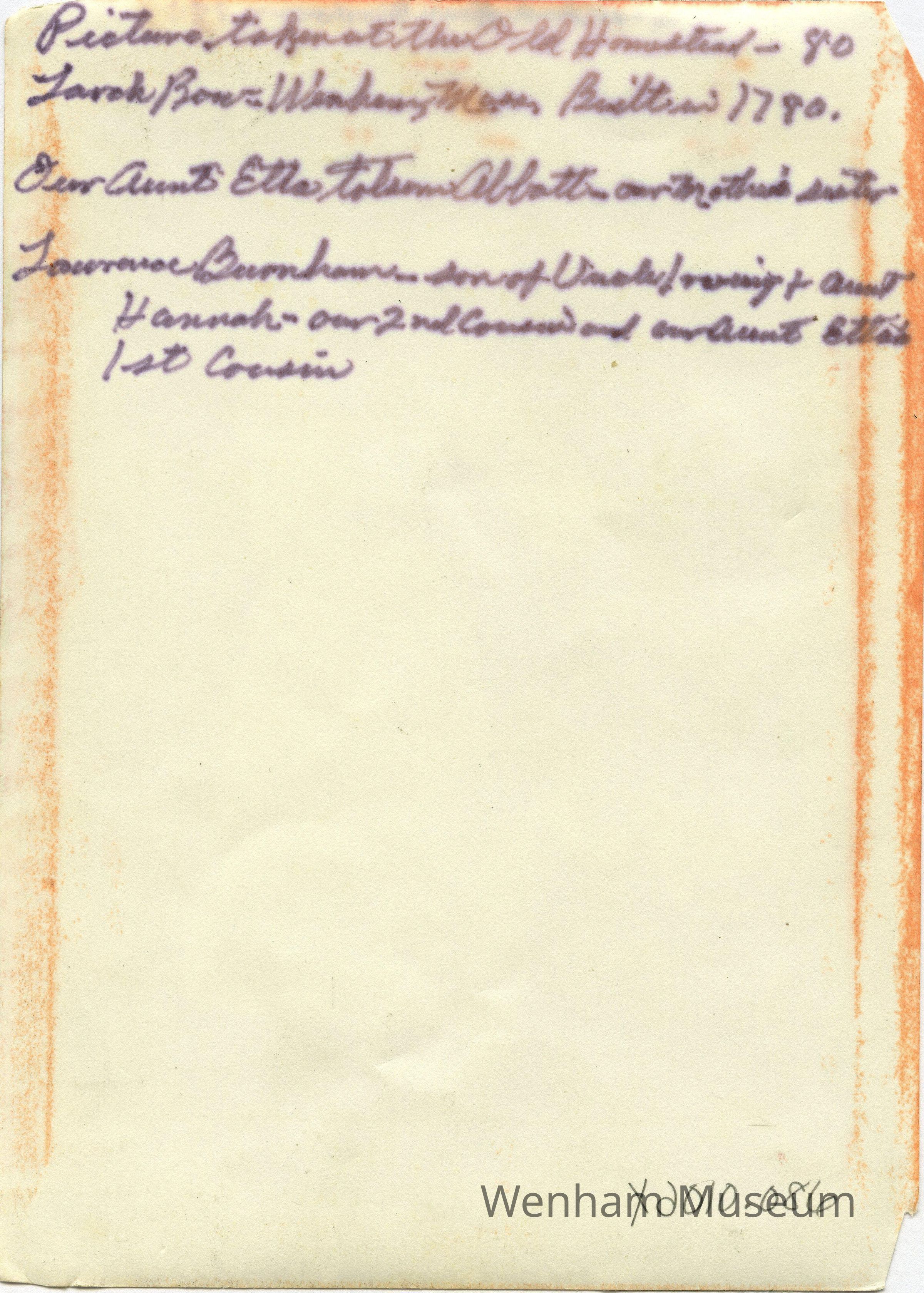 Black and white photograph of Etta Folsom Abbott and Lawrence Burnham at 80 Larch Row Homestead in Wenham.