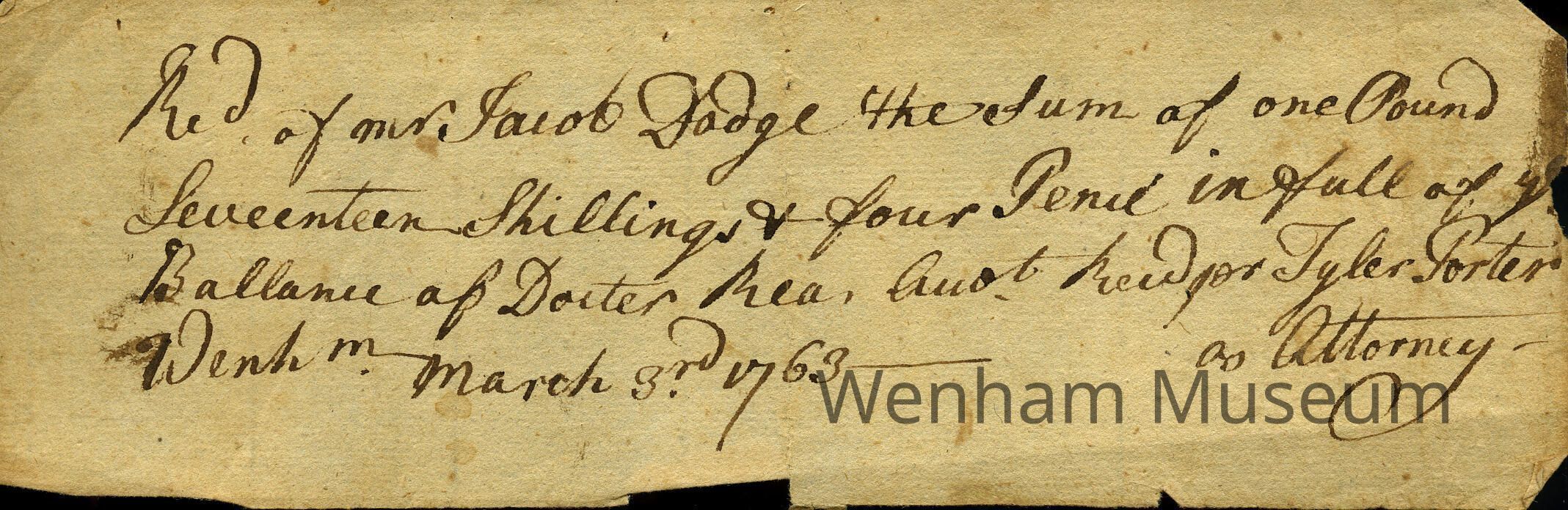 Receipt from Jacob Dodge, paid March 3, 1763