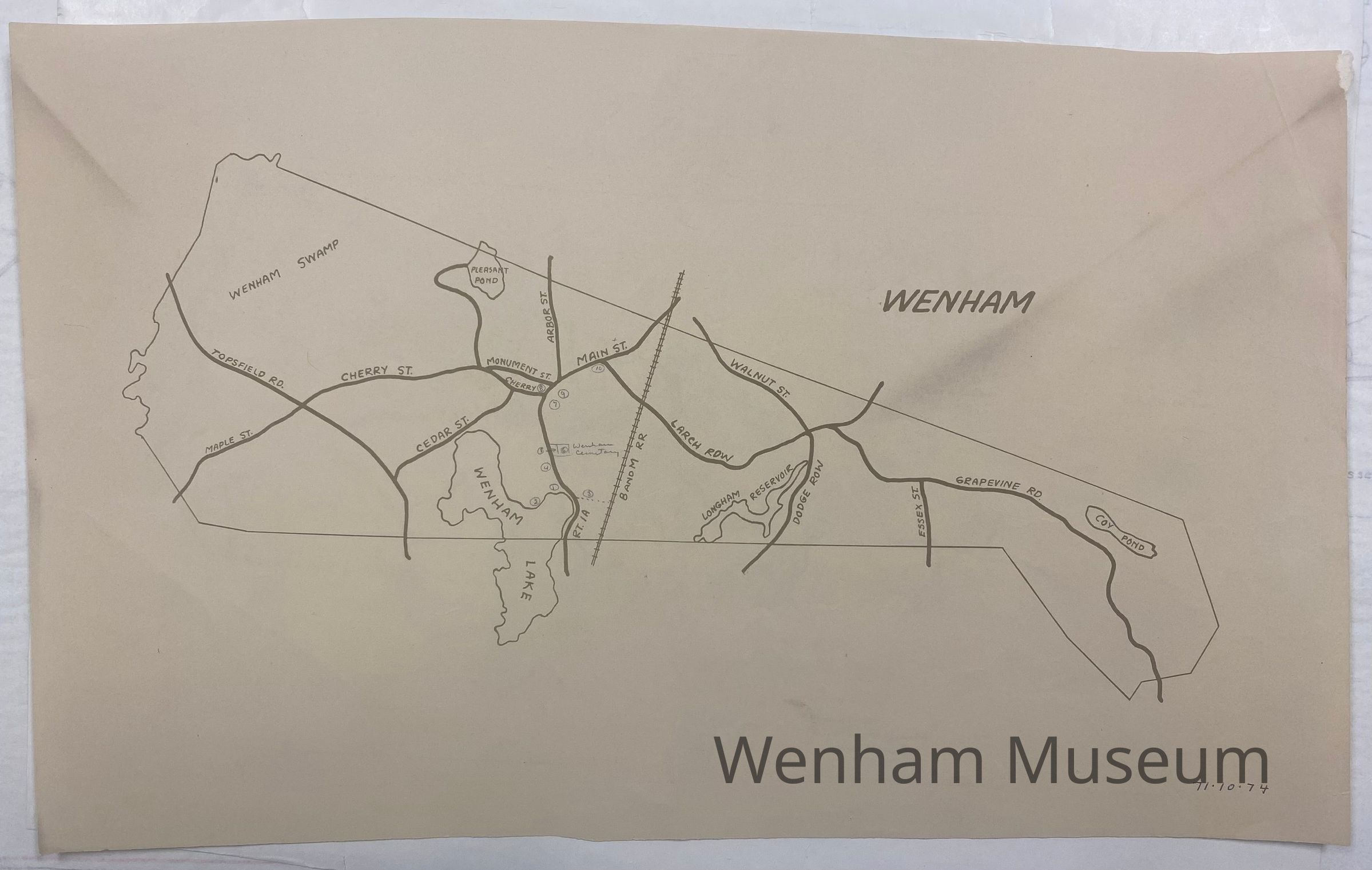 Map - Wenham Outline showing roads. Printed map