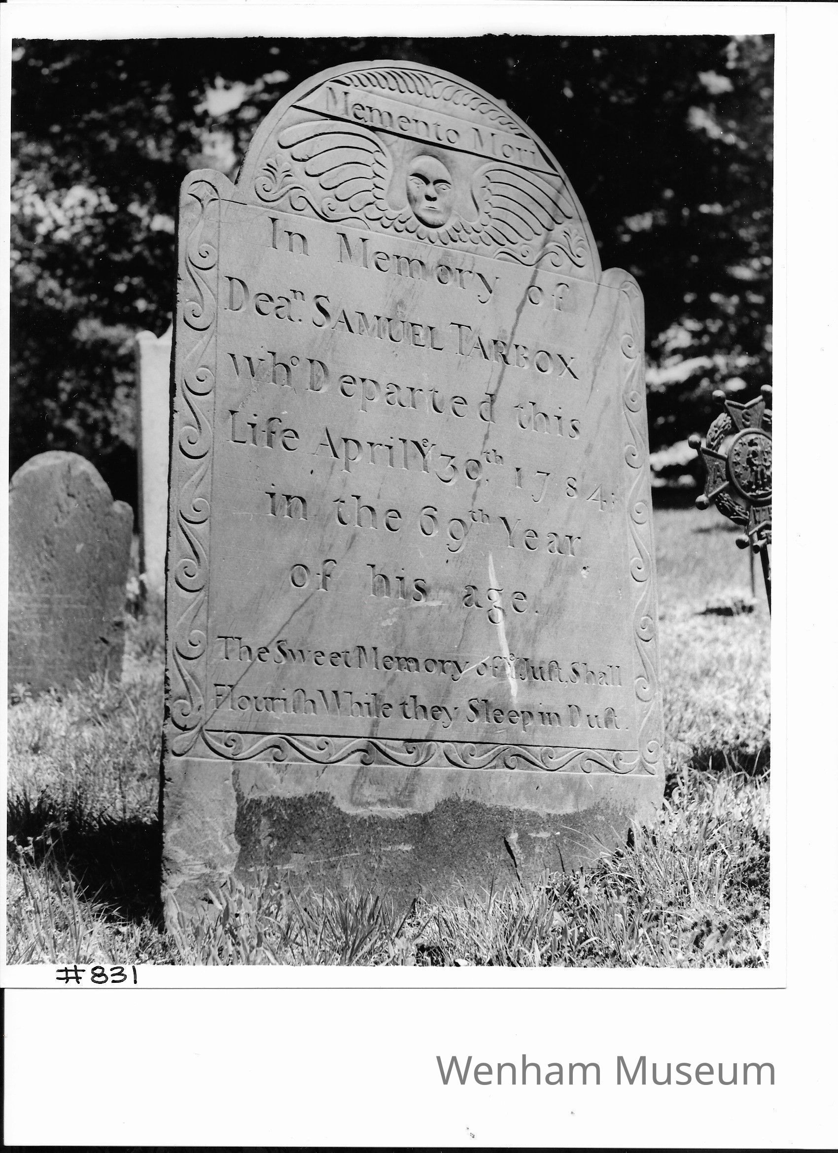 Headstone of Dea. Samuel Tarbox (1715-1784) with inventory form.