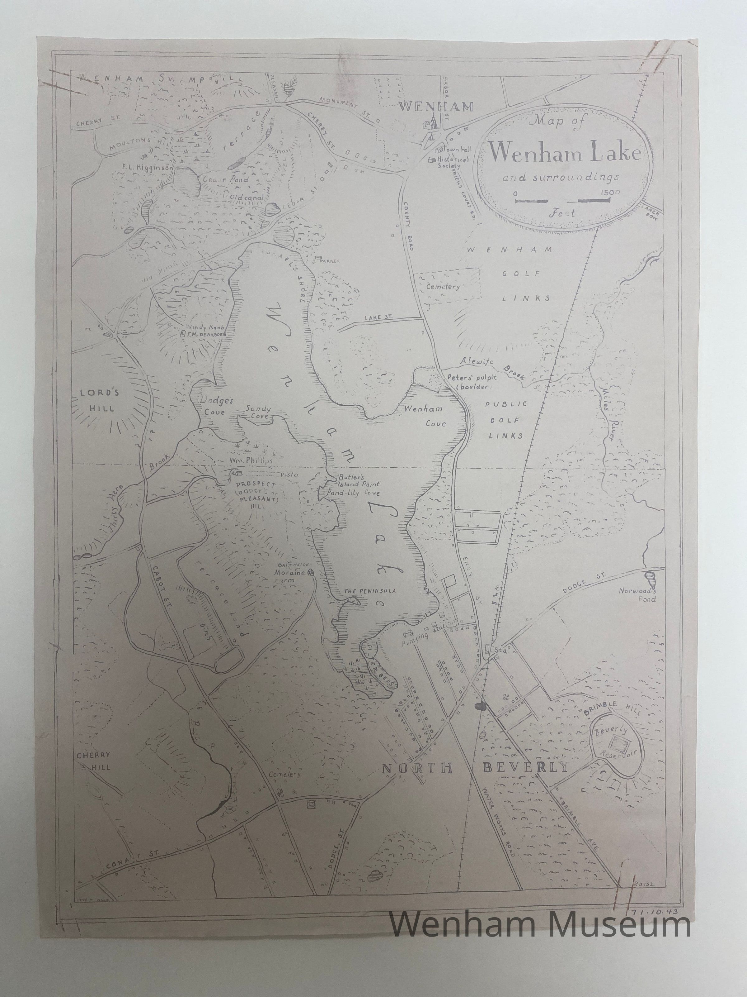Wenham Lake and surrounding areas Maps: Wenham Lake Circulated in 1938 17" X 12 1/2" printed map of Wenham Lake and surroundings drawn by Raisz. Map used in Wenham Great Pond by Phillips.
