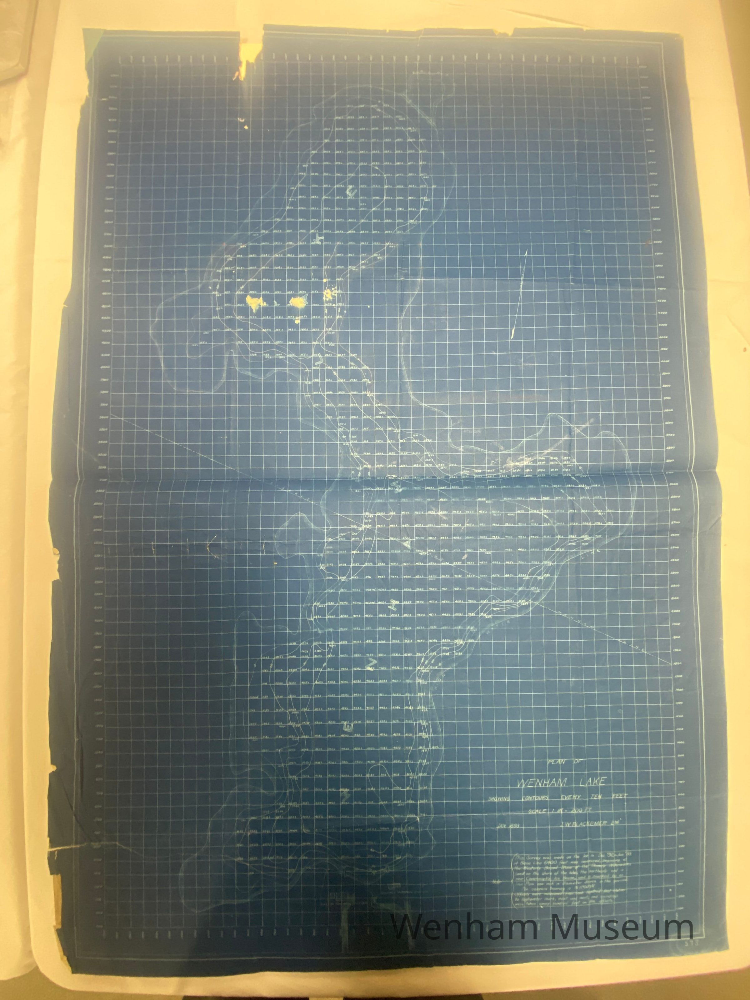 Wenham Lake showing the contours every 10 ft. by J.W. Blackemer II (Blueprint?). January 1893