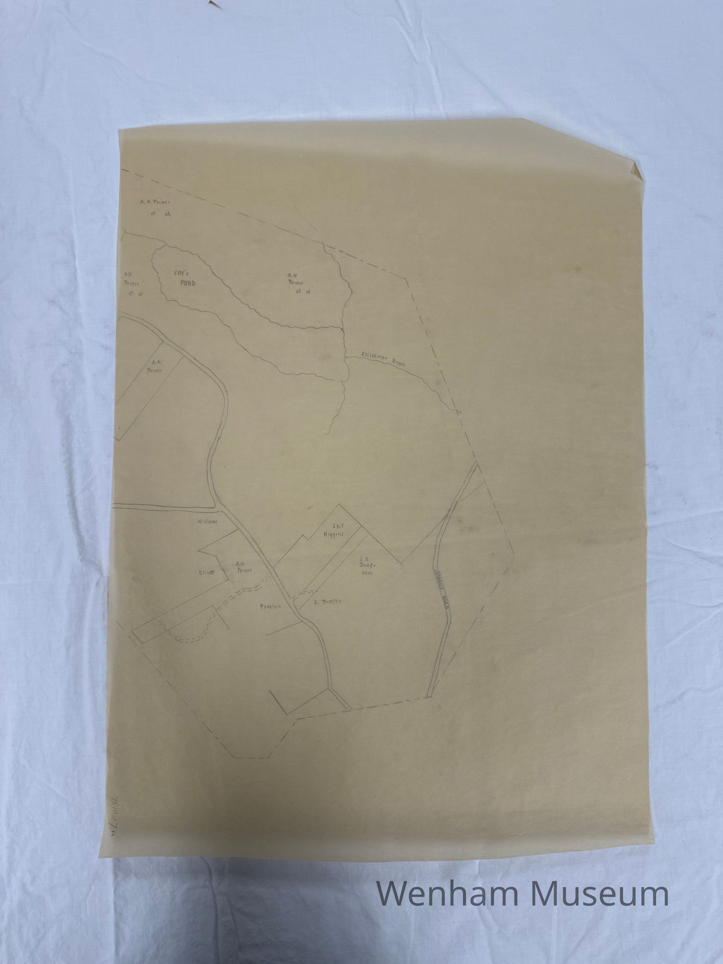 This is three pieces of a four part map of Wenham. The last piece is x2010.005