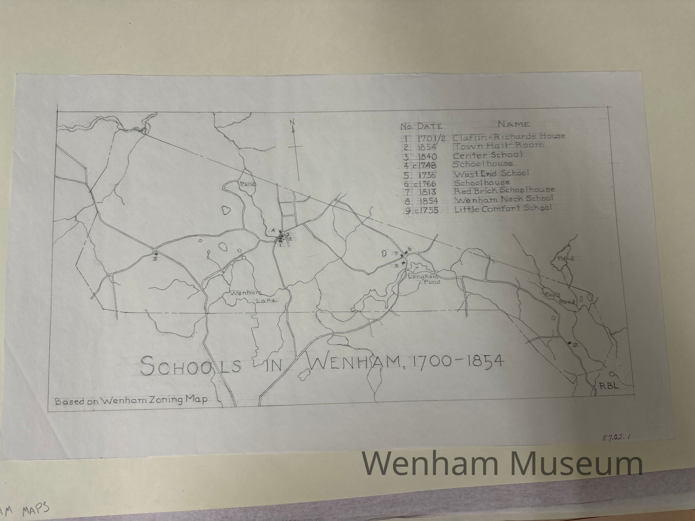 Schools in Wenham 1700-1854 based on Wenham Zoning Map