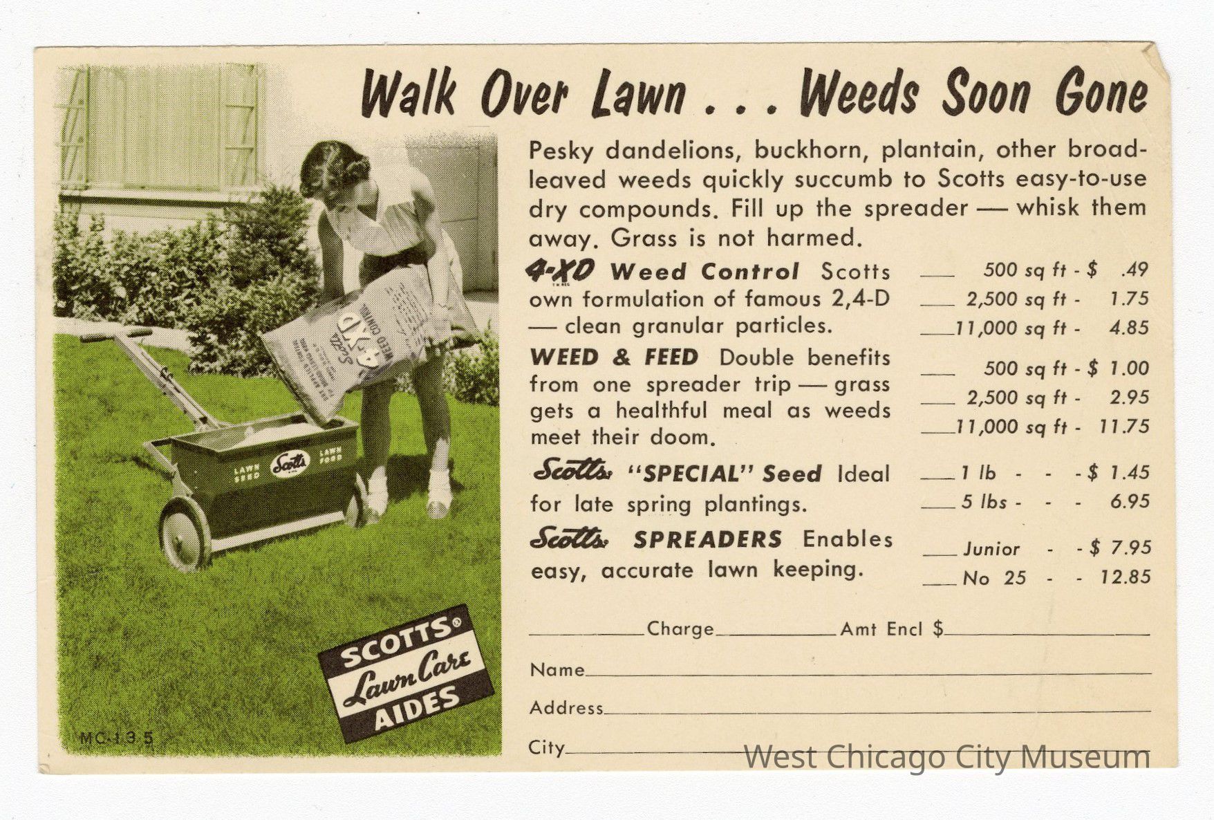 Postcard, advertising-Scotts Lawn Care-W.R. Buchanan