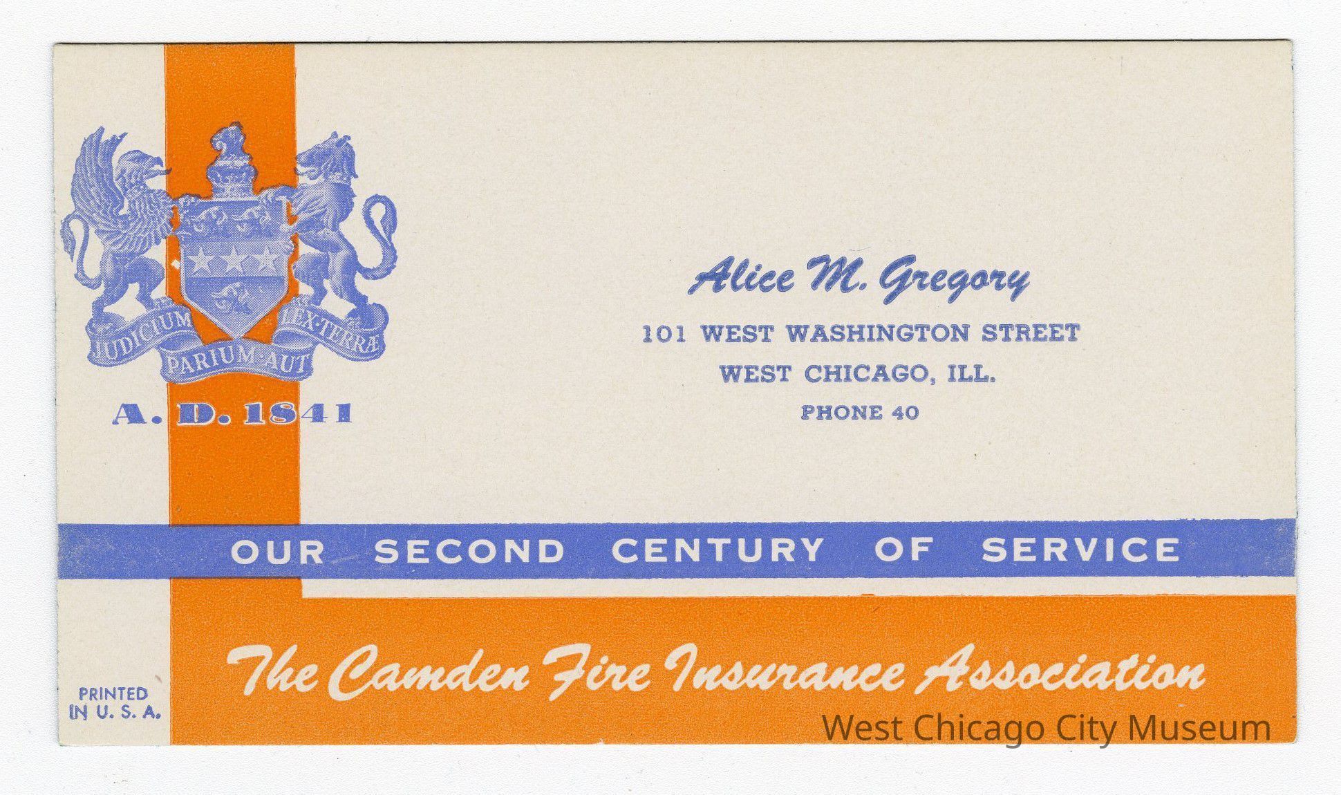 Blotter, Insurance Co. Alice M. Gregory, 101 West Washington Street, "The Camden Fire Insurance Association"