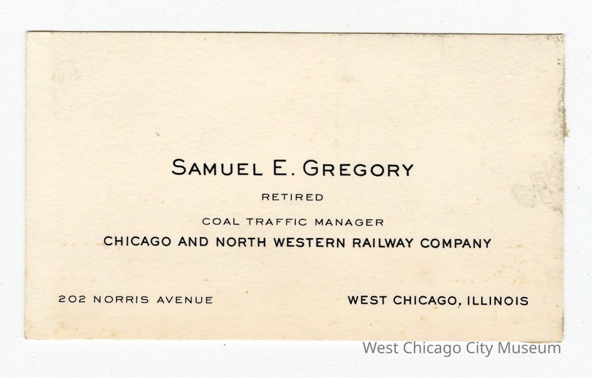 Business card for Samuel E. Gregory (Retired, Coal Traffic Manager, C&NW)