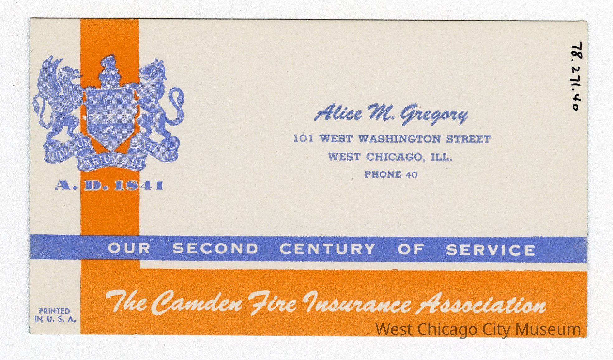 Blotters for Alice M. Gregory, agent for the Camden Fire Insurance Association