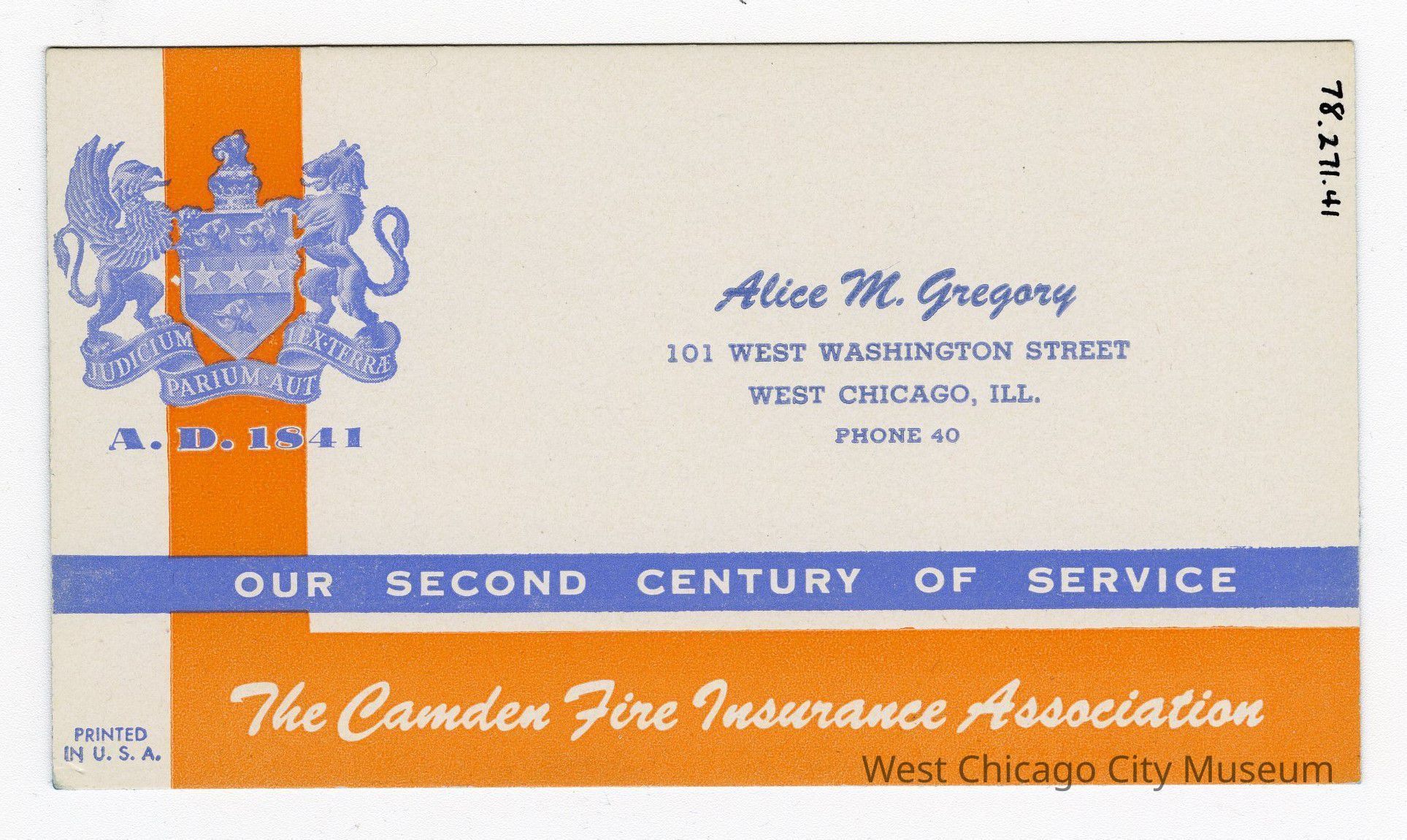 Blotters for Alice M. Gregory, agent for the Camden Fire Insurance Association