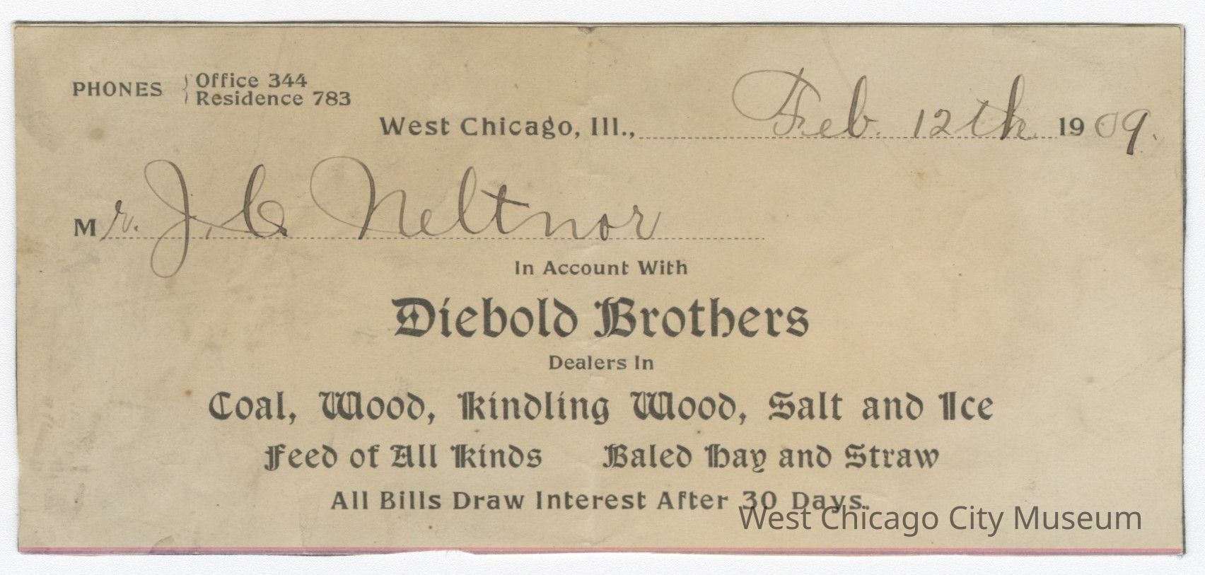 Business Statement, Diebold Brothers, Coal/Wood/Ice