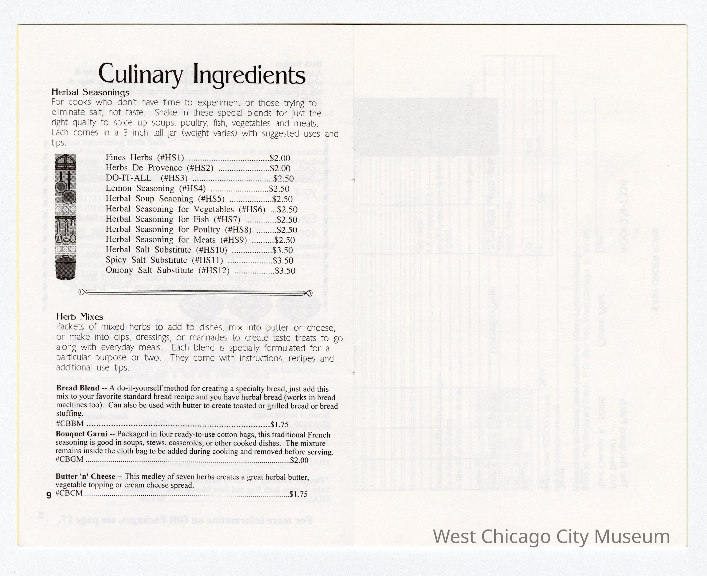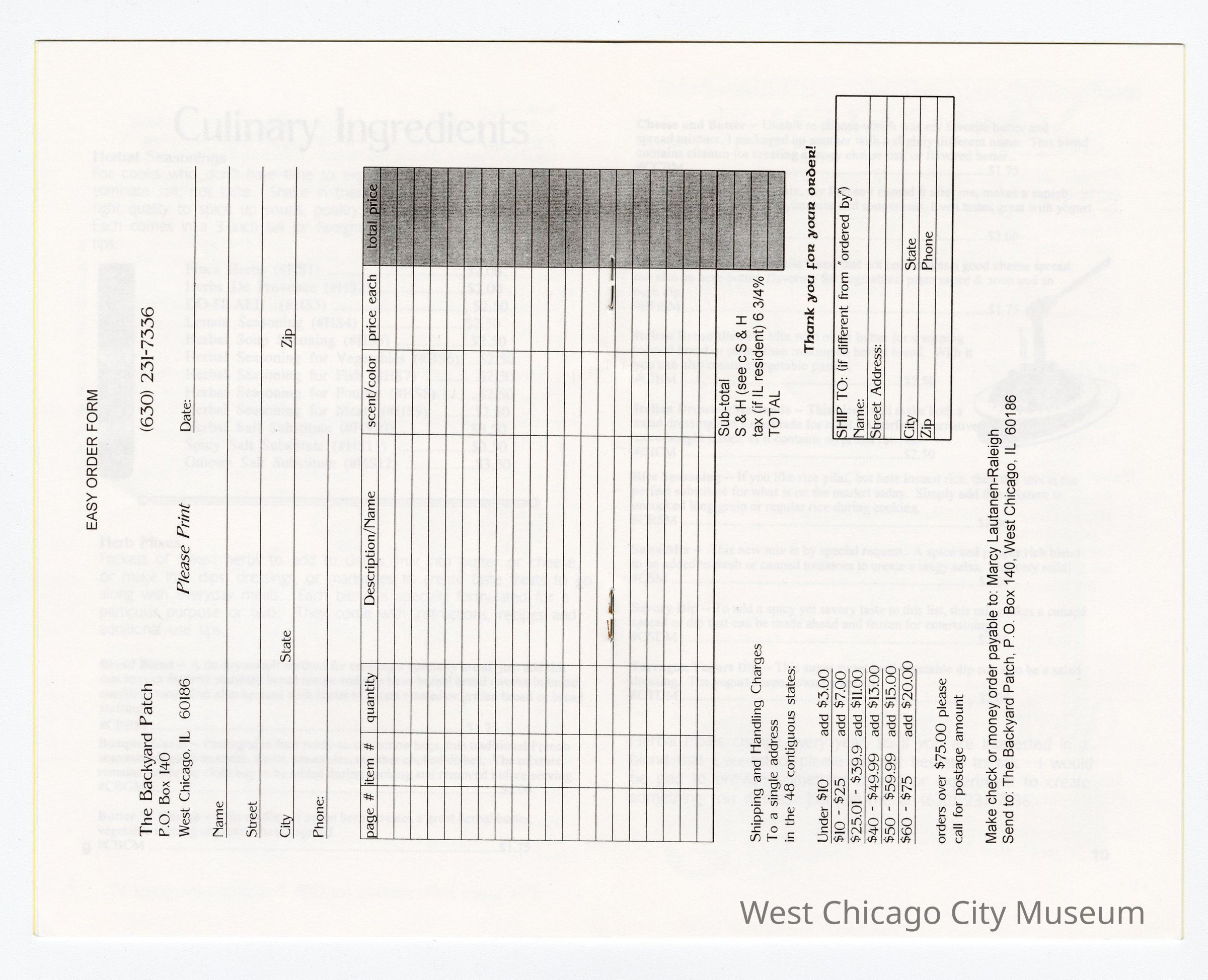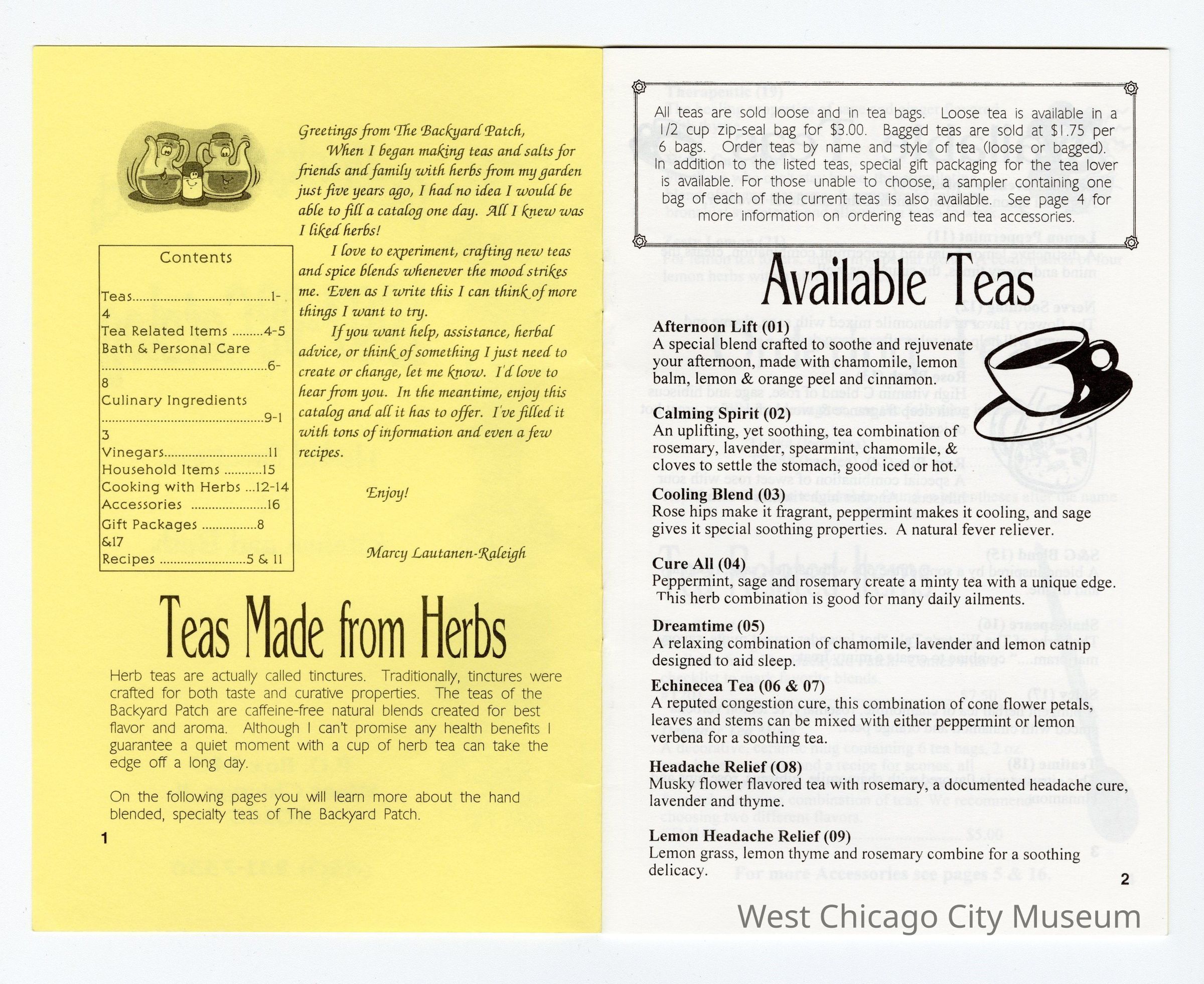 Booklet-The Backyard Patch 1997-98 Catalog-Herbal Creations for Kitchen and Bath W.C., 18 pages. Drawing of herbs along left side of front cover. Bright yellow cover with white pages and black print, 5 1/2" x 8 1/2".Collection