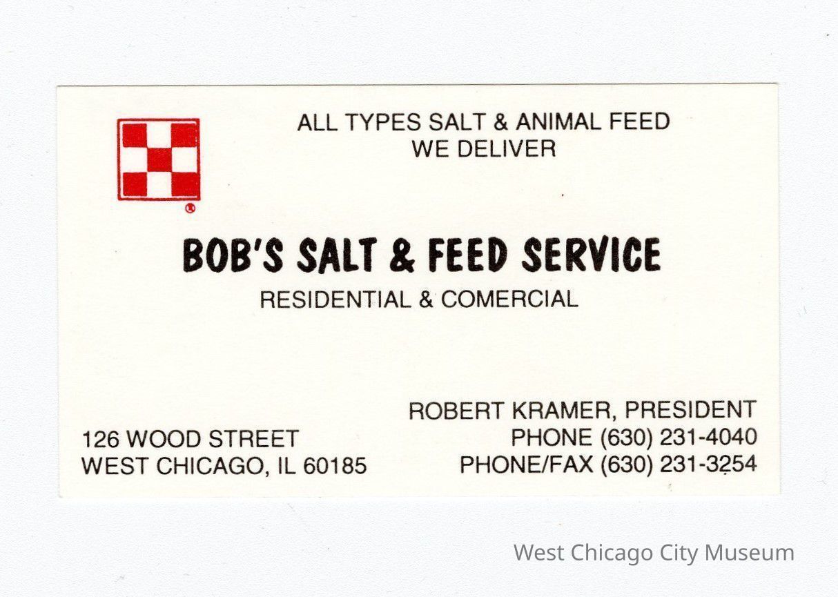 Business card, Bob's Salt & Feed Service, Robert Kramer President, black/red on white, 2"h x 3 1/2" w