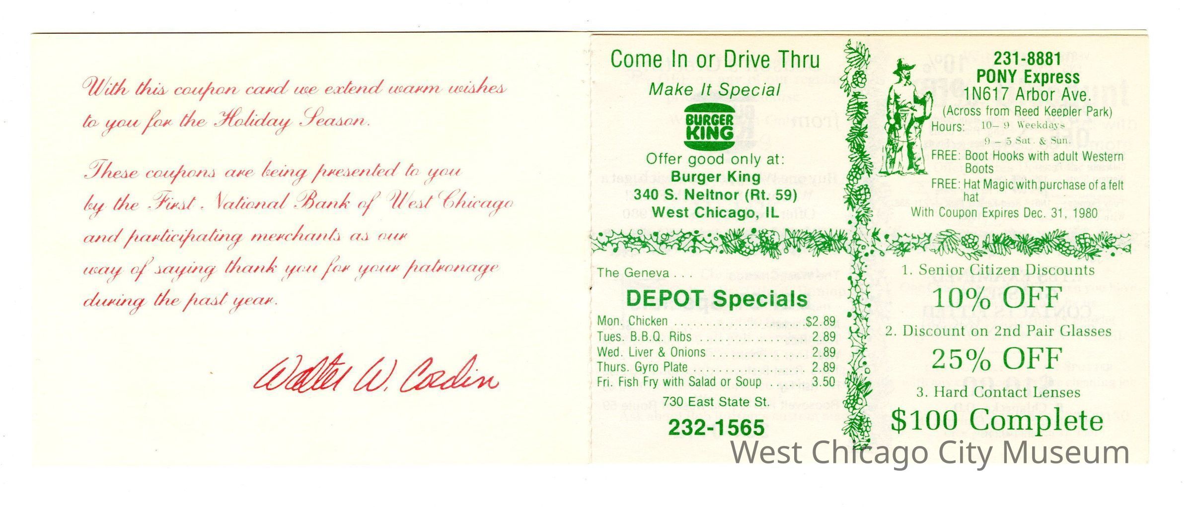 Seasons Greetings First National Bank coupon booklet