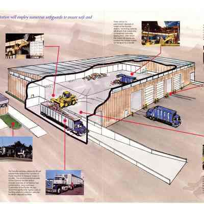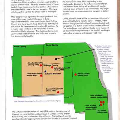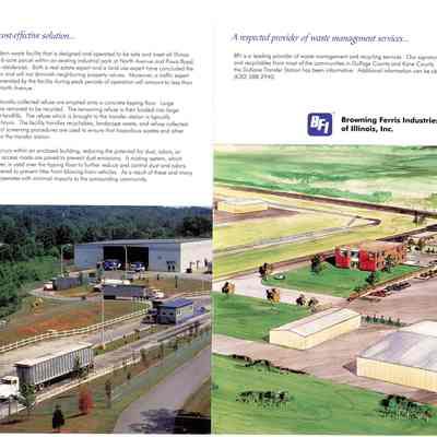 Flyer, trifold, Dukane Transfer of Browning-Ferris Industries of Illinois, Inc. Color picture of transfer station on cover. Blue, black print, 8 1/2" x 11"Collection