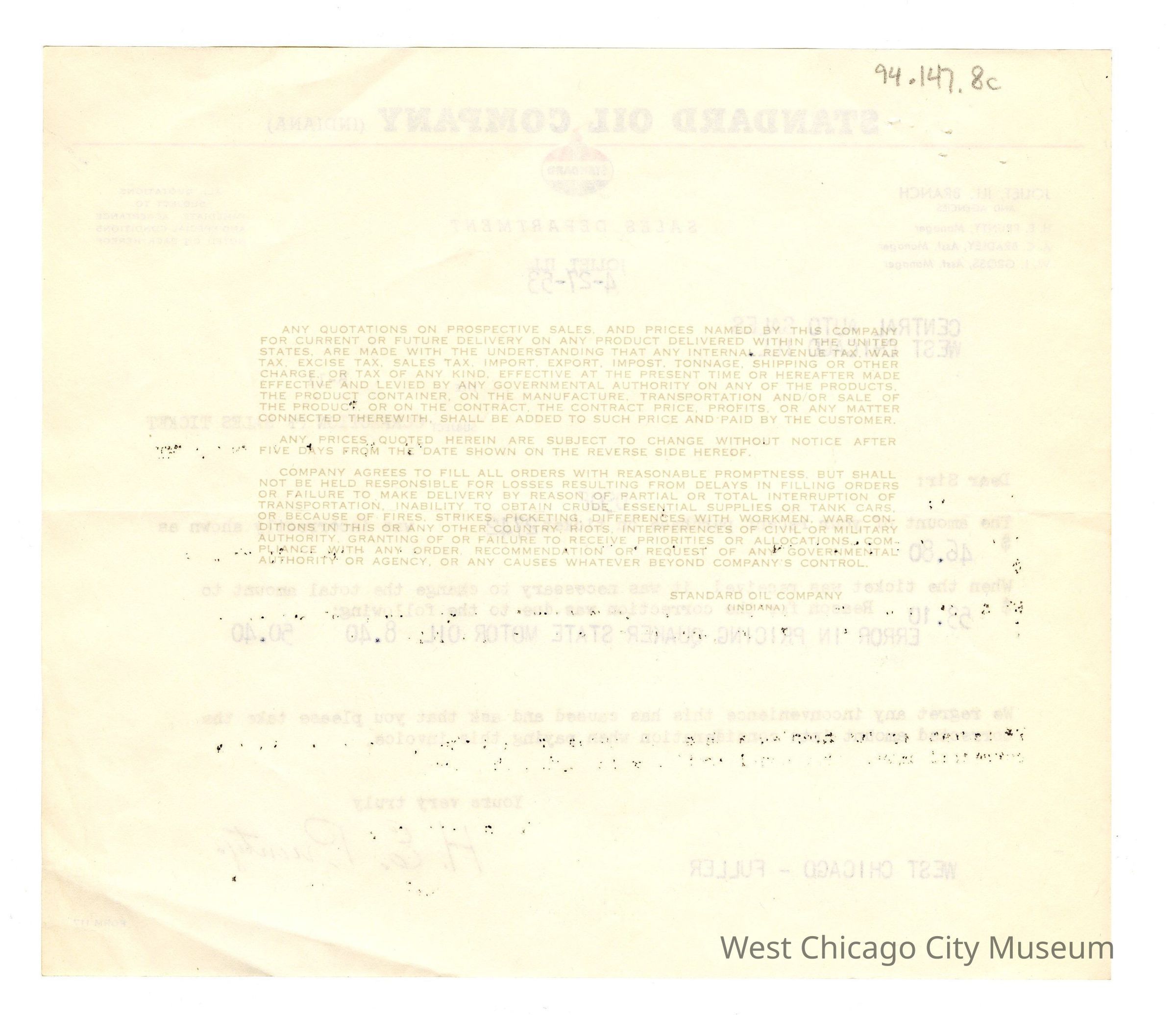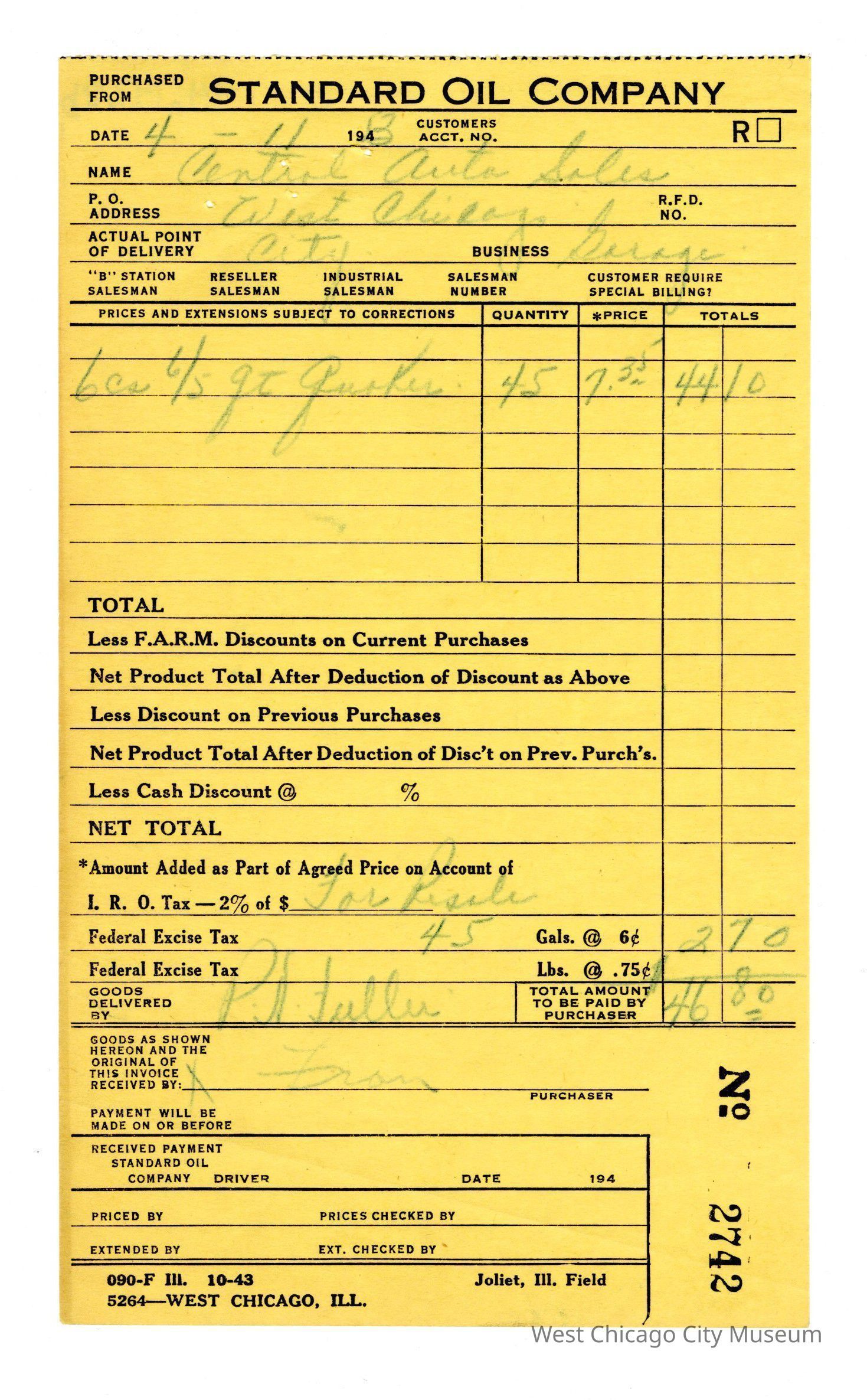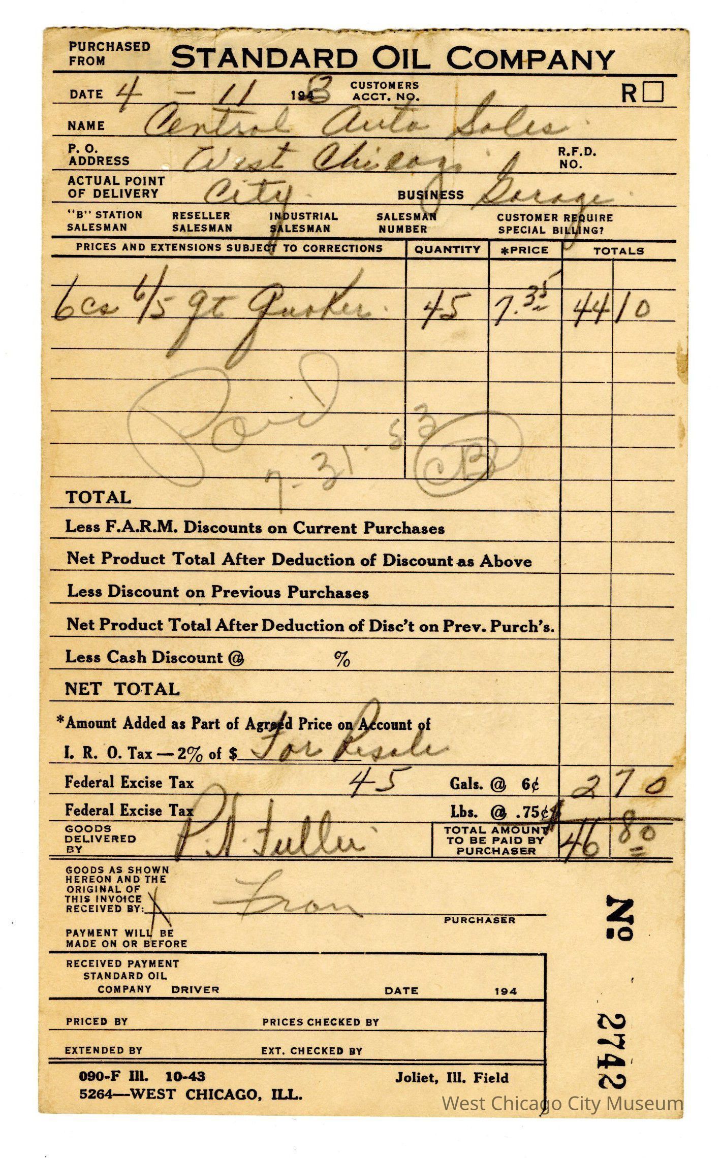 Statement, P.H. Fuller Standard Oil, to Central Auto Sales, 7/1/53, attached to statement are receipts (4) and coorection of sales tickets (2)Collection