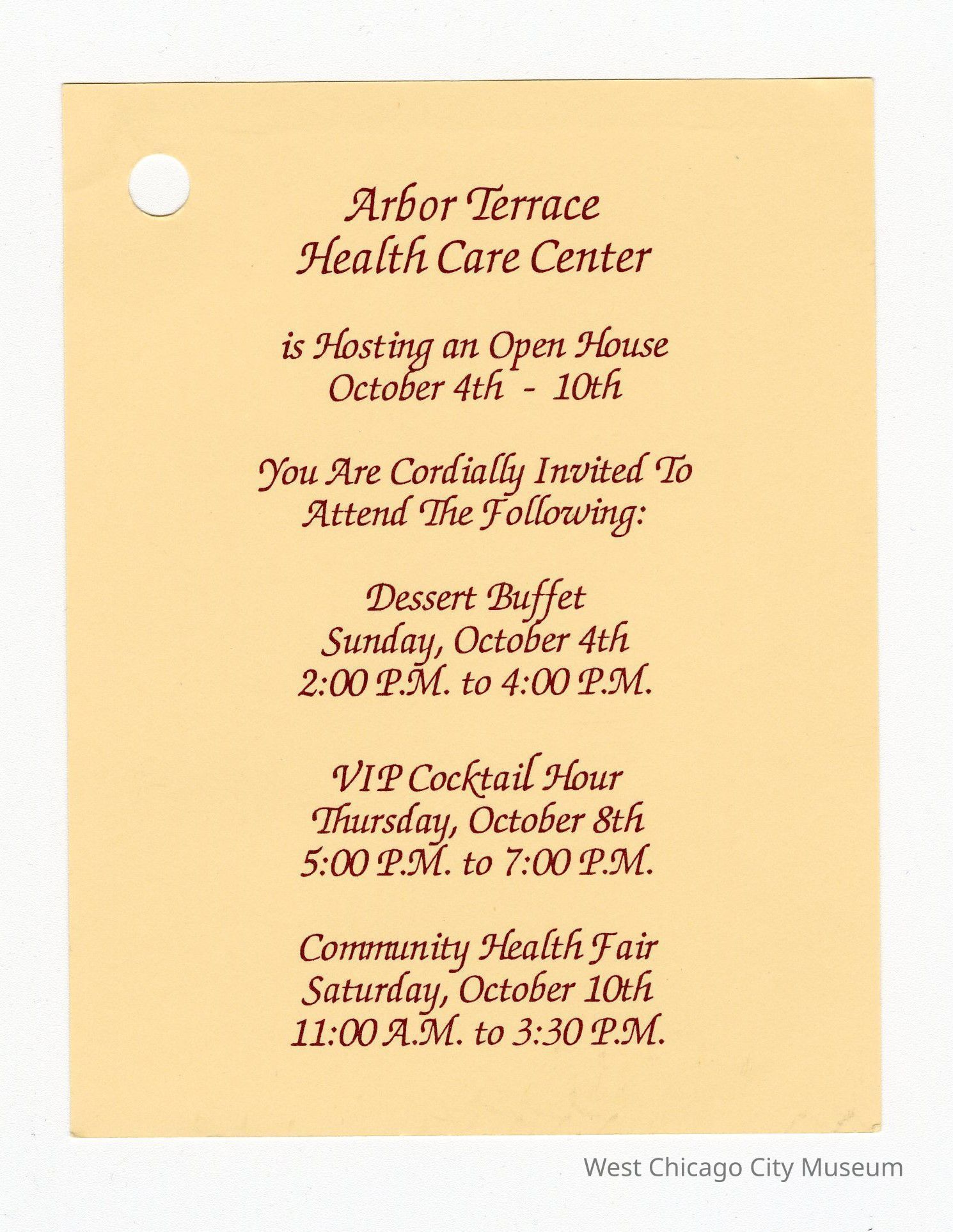 Invitation for Arbor Terrace Health Care Center events Oct. 4th-10th