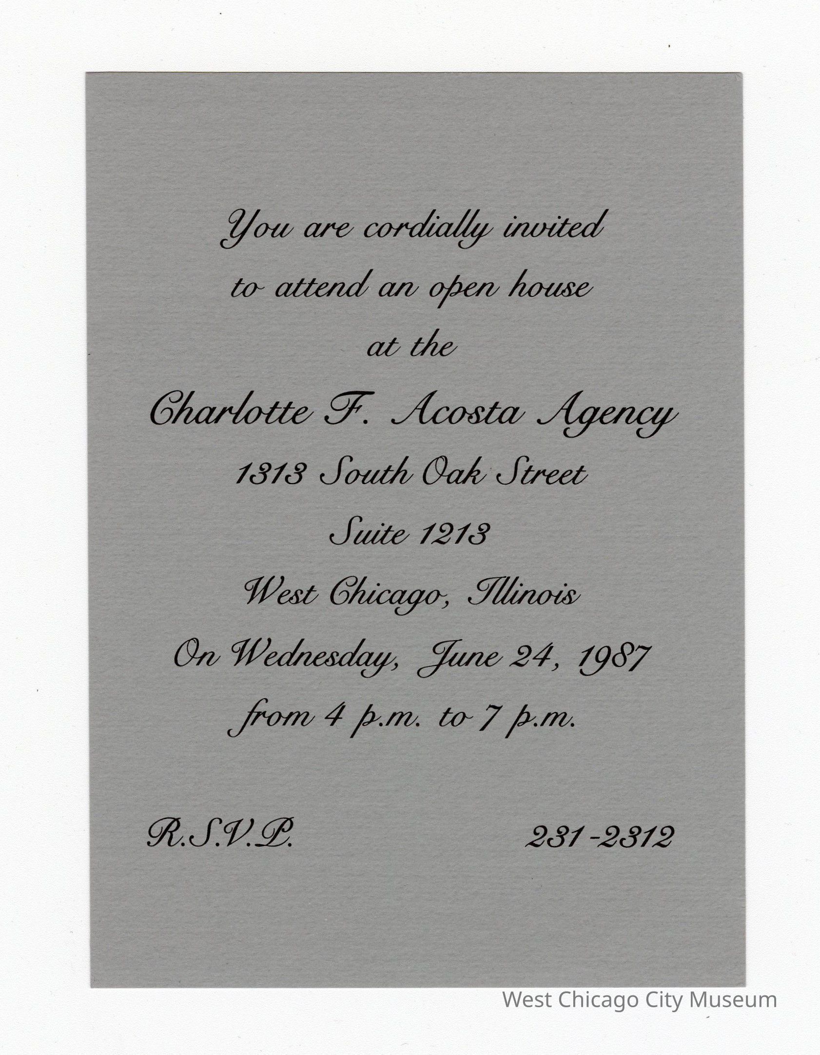 Invitation to Charlotte F. Acosta Agency June 24 1987