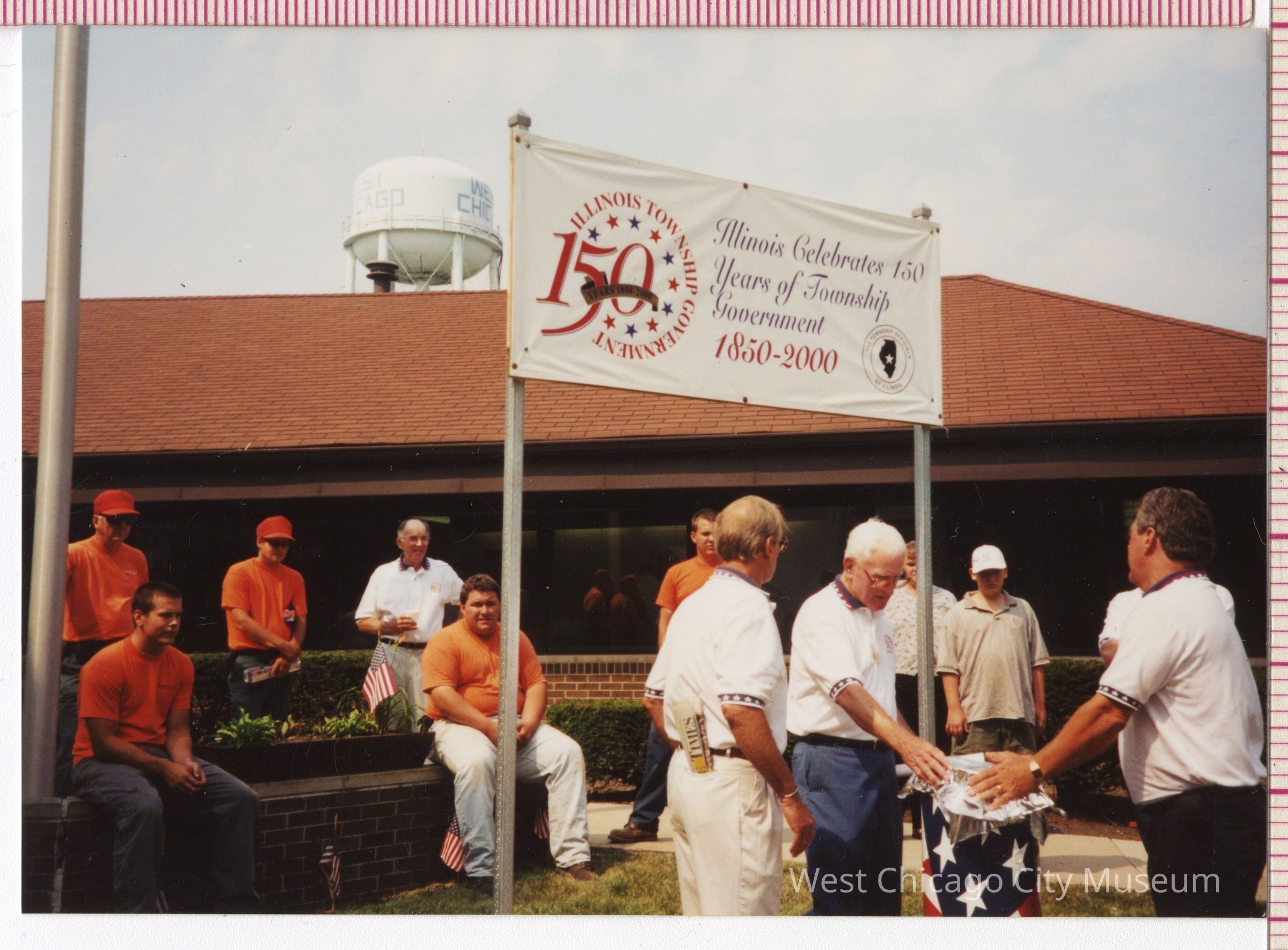 Photographs, color, Winfield Township Celebration of 150 years, July 27, 2000, time capsule ceremony at Winfield Township offices, 130 Arbor Avenue, Aluminum foil is placed on the top of the time capsule before sealing. 4 7/8" w x 3 1/2" hPhotograph Details