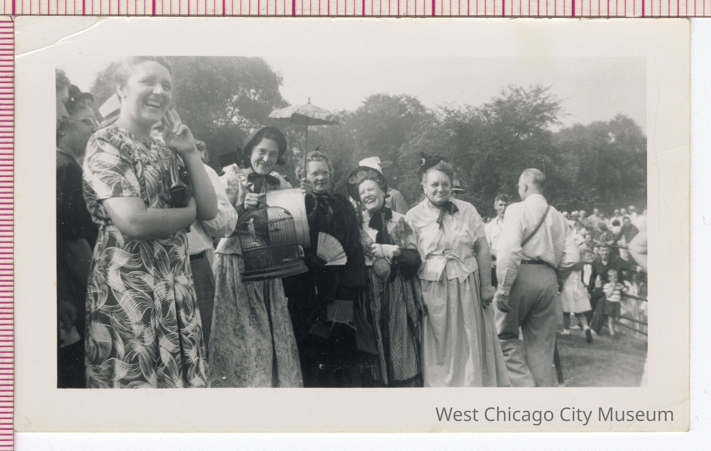 Photograph: Stella Gregory, Daisy Cain Voelz, and three other women; 4 3/4 x 3"Photograph Details