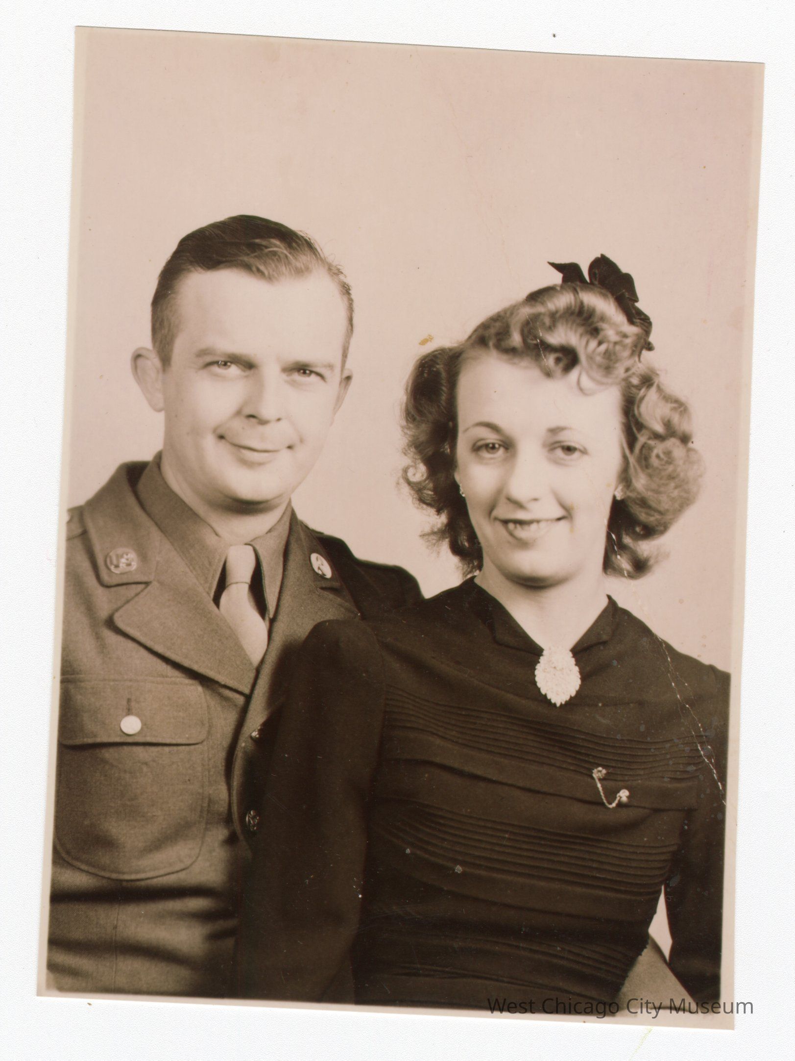 Photograph: Edgar "Hap" F. Kruse & Jeanne Yolpe Kruse: Photograph; sepia?/black and white; portrait of man in uniform and woman; Edgar F Kruse and Jeanne Volpe Kruse; Good condition: minimal wear throughout; Dimensions: 5"x 6.5"Photograph Details
