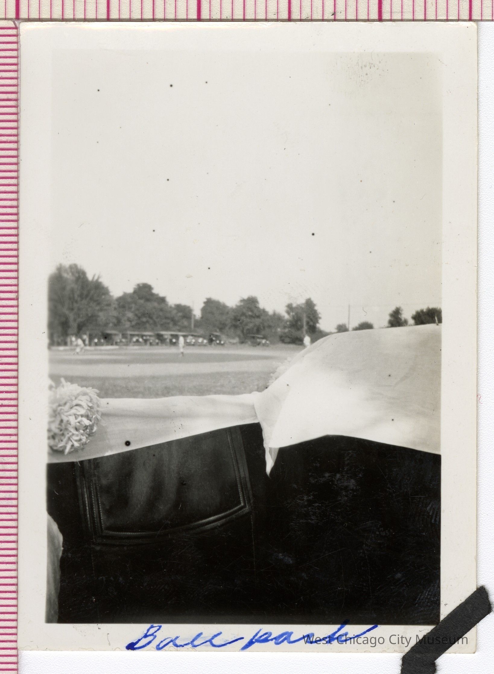 Photo, B&W: Annual Homecoming Day, September 5, 1927: Ball park, possibly Neltnor Field, "Ball park" is written in blue ink on bottom border. 2 9/16" w x 3 1/2" hCollection