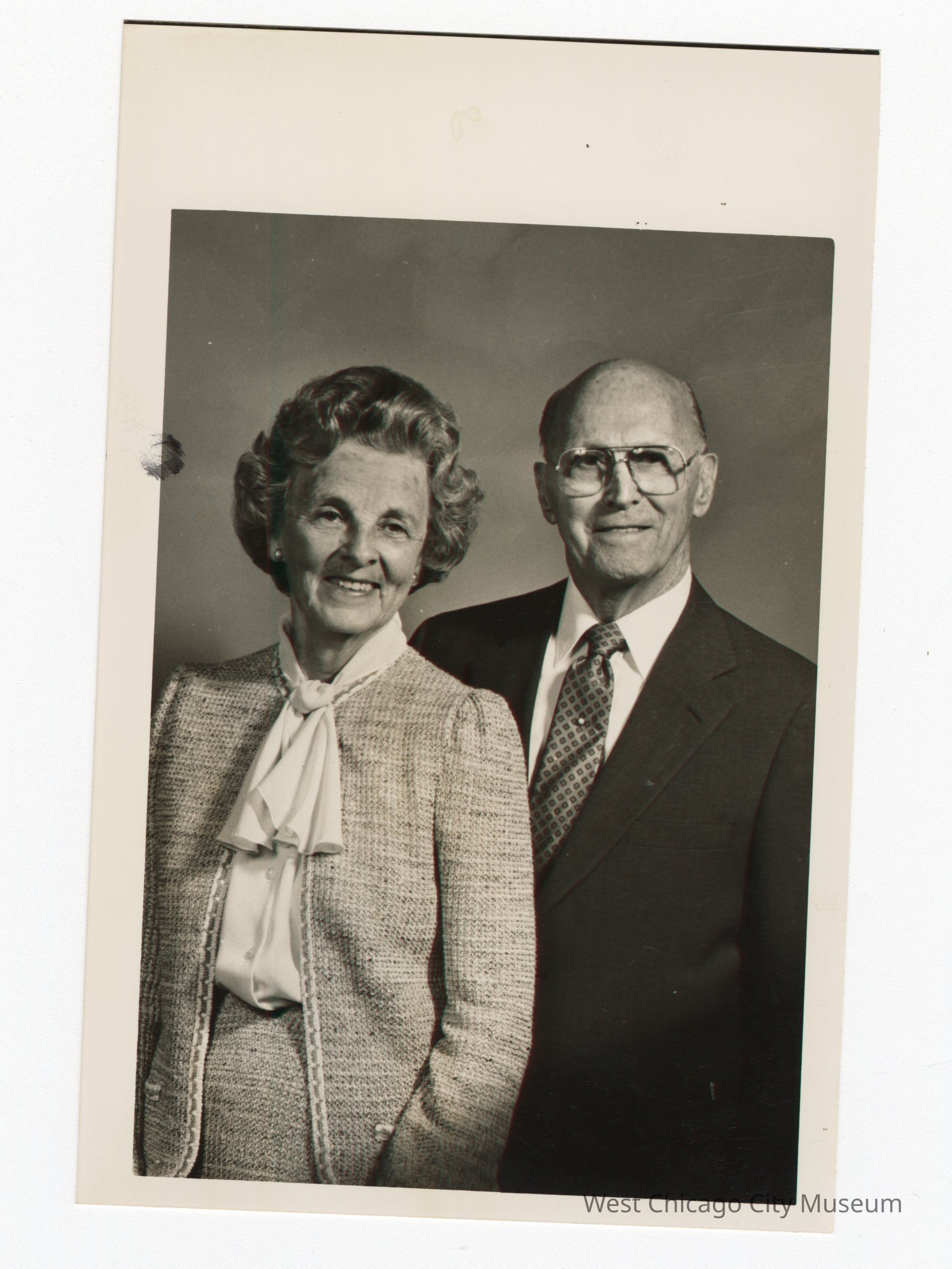 Photograph: Wayne & Helen Fox: Photograph; black and white; portrait of elderly couple; Wayne and Helen Fox; Good condition: minimal wear throughout; Dimensions: 5"x 8"Photograph Details