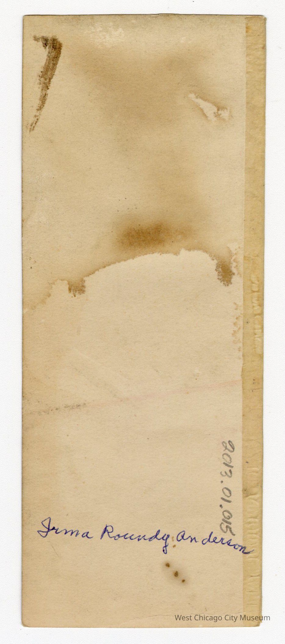 Photograph of Irma Roundy in 1914, tissue overlay adhered to photoPhotograph Details