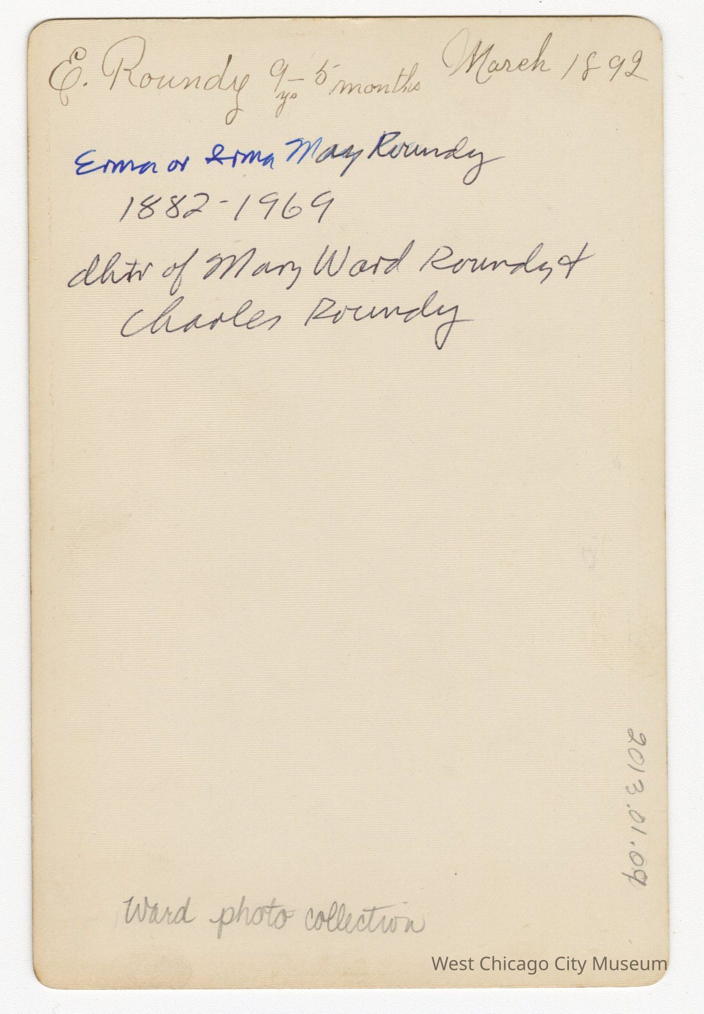 Photograph "E Roundy" at 9 years and 5 months old, clear imagePhotograph Details