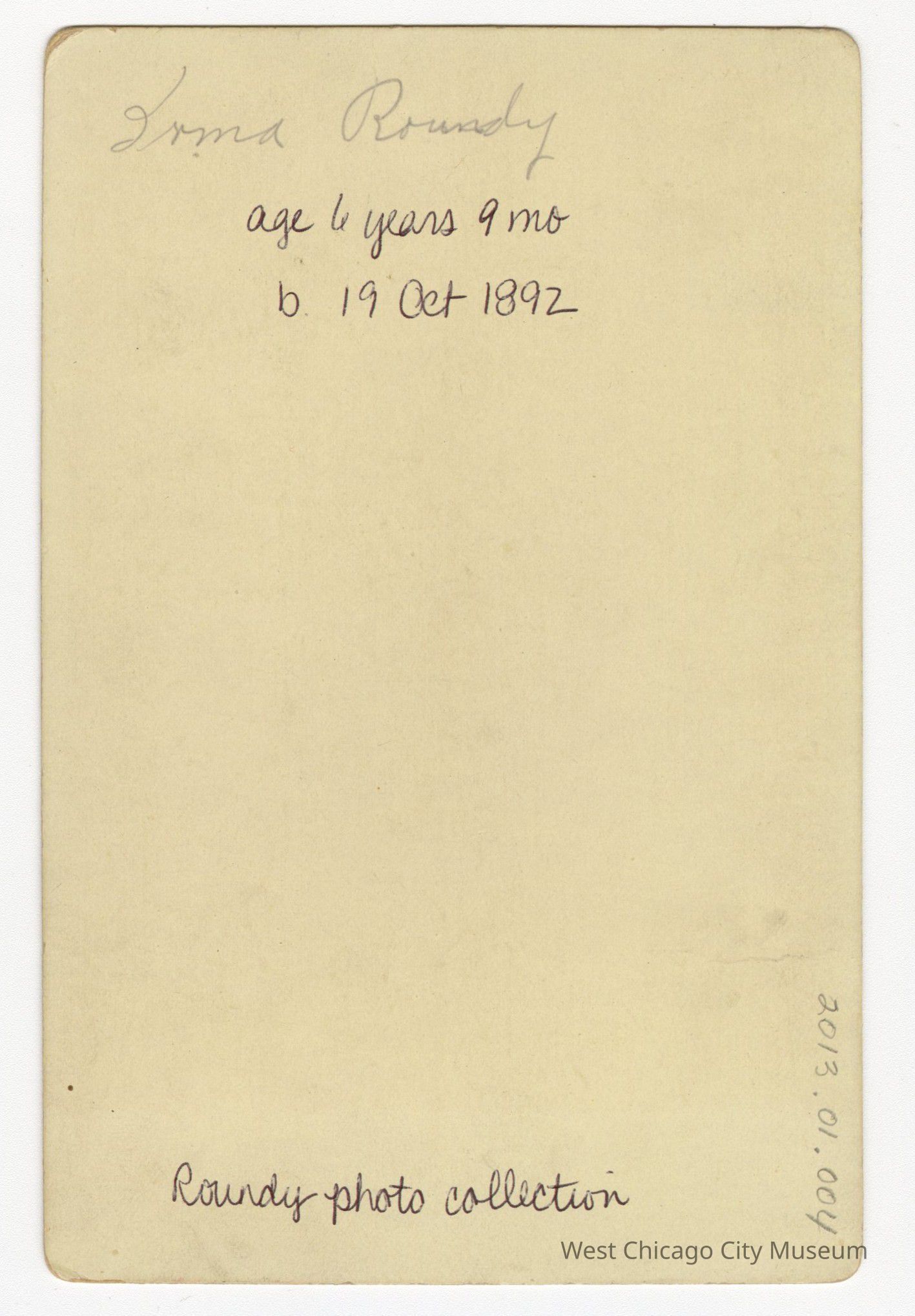 Photograph of Irma M Roundy at 6 years, 9 months old, clear imagePhotograph Details